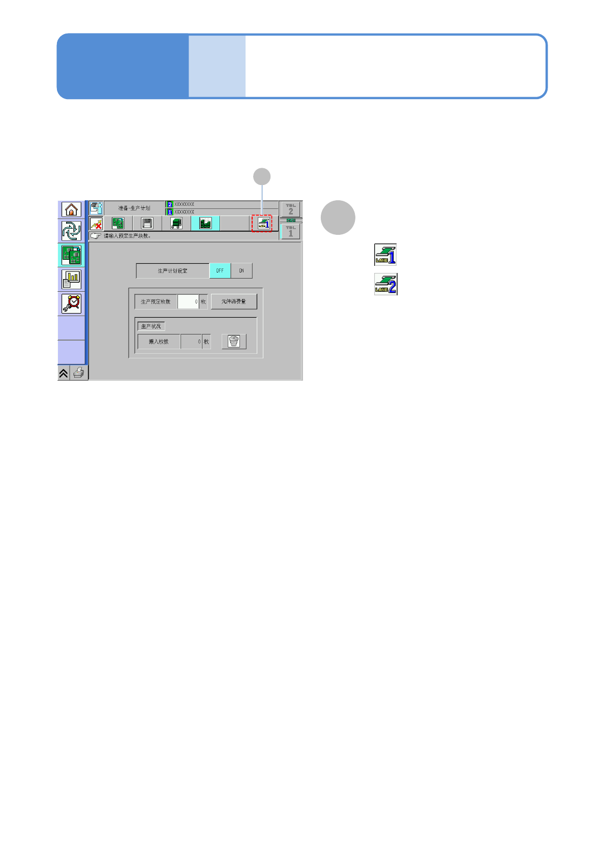 NPM-D3 EJM6DC-MB-02O-02 2-2-1 -9 各部位 名称 触摸屏 5 选择双传送带,将能够切换轨道 1 和轨道 2 。 轨道切换按钮 A A ●每按一次,切换模式。 : 轨道 1 : 轨道 2 ●当按钮处于无效状态时,或者只在 一个 轨道上安装了生产数据之际,不会执 行 切换。 操作篇 2-2-1