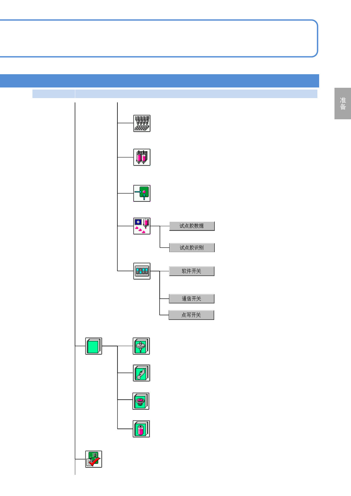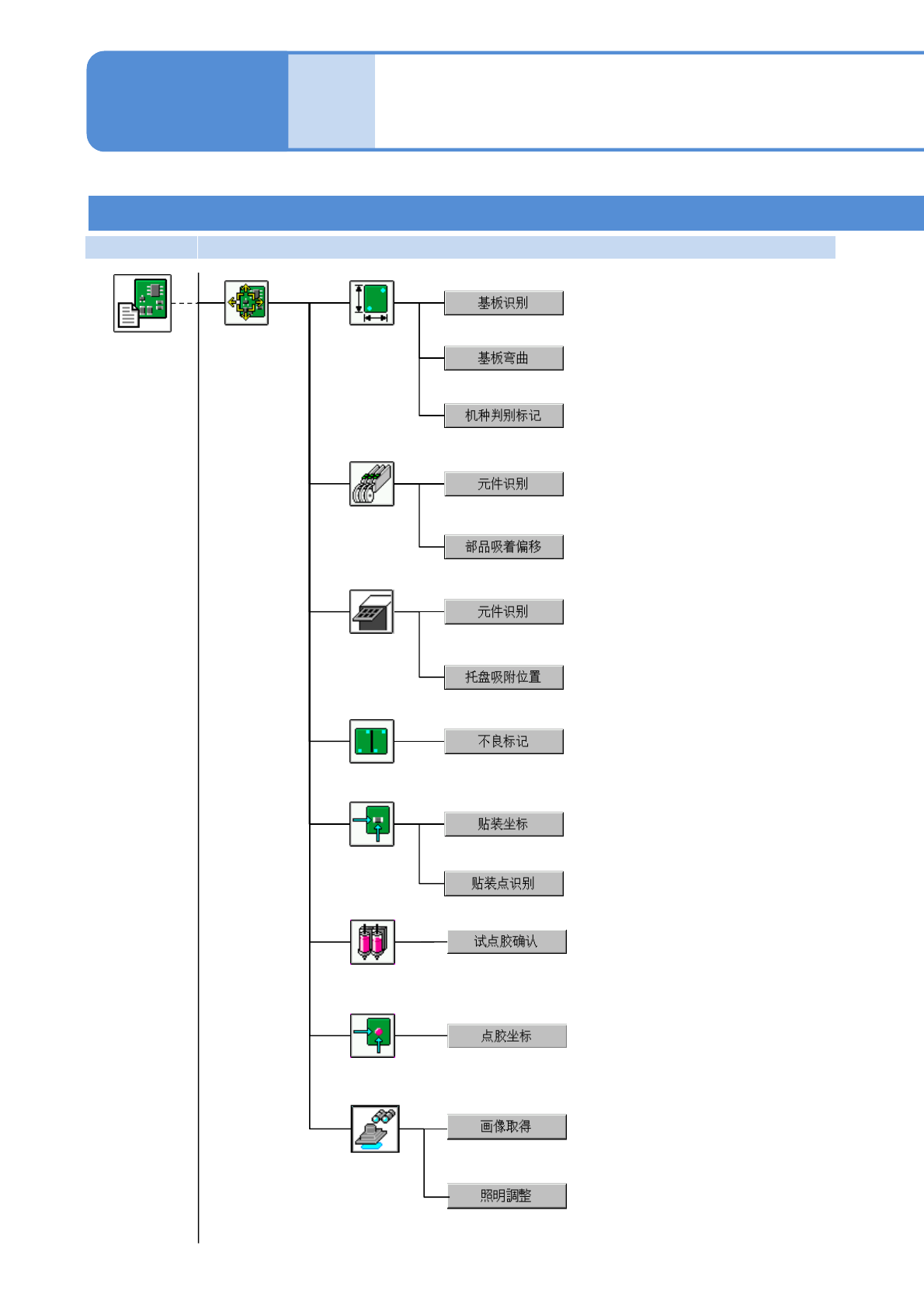 NPM-D3 EJM6DC-MB-02O-02 第 1 阶层 第 2 阶层 第 3 阶层 第 4 阶层 2-2-2 -10 吸嘴存储器 显示吸嘴交换器的吸嘴信息。 软件开关 确认设定运转条件的软件开关 的设置状态。 确认设备的通信开关的设定状态。 ( 搭载转印单元时会显示 ) 确认转印条件。 ( 选项 ) 显示可以搭载的供料器程序库的数据 。 显示可以使用的吸嘴程序库的数据。 贴装吸嘴 供料器 确认数据 确认生产数据 选择点胶嘴 (点胶…