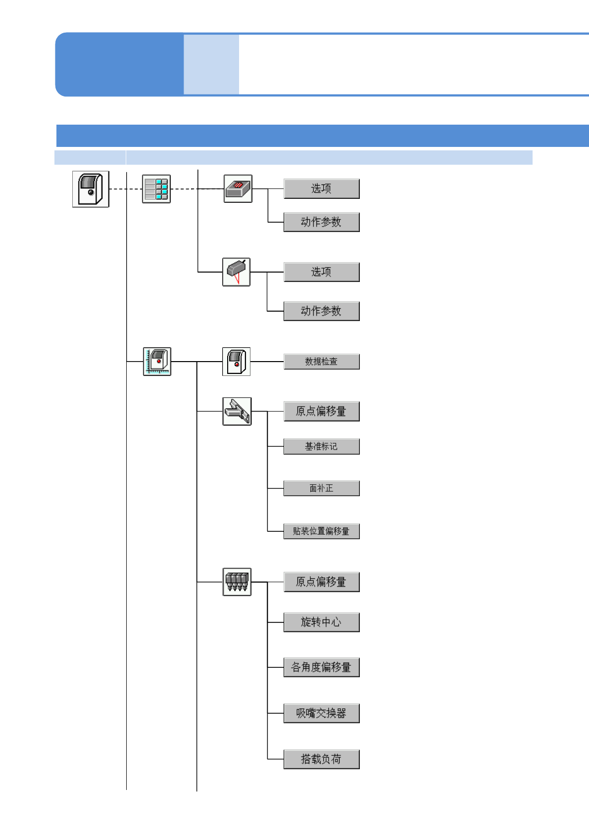 NPM-D3 EJM6DC-MB-02O-0 2 第 1 阶层 第 2 阶层 第 3 阶层 第 4 阶层 2-2-2 -15 工程师模式 6 各部位 名称 菜单构成 8 设定 机器菜单 设定参数。 设定选项功能。 高度 传感器 确认数据确认的结果。 全体 参数 确认原点偏移量。 确认 XY 单元的基准标记偏移量。 确认贴装范围面补正的参数。 确认贴装位置的偏移量。 XY 单元 确认贴装头的旋转中心的偏移量。 确认各贴装头各角度的偏移量。…