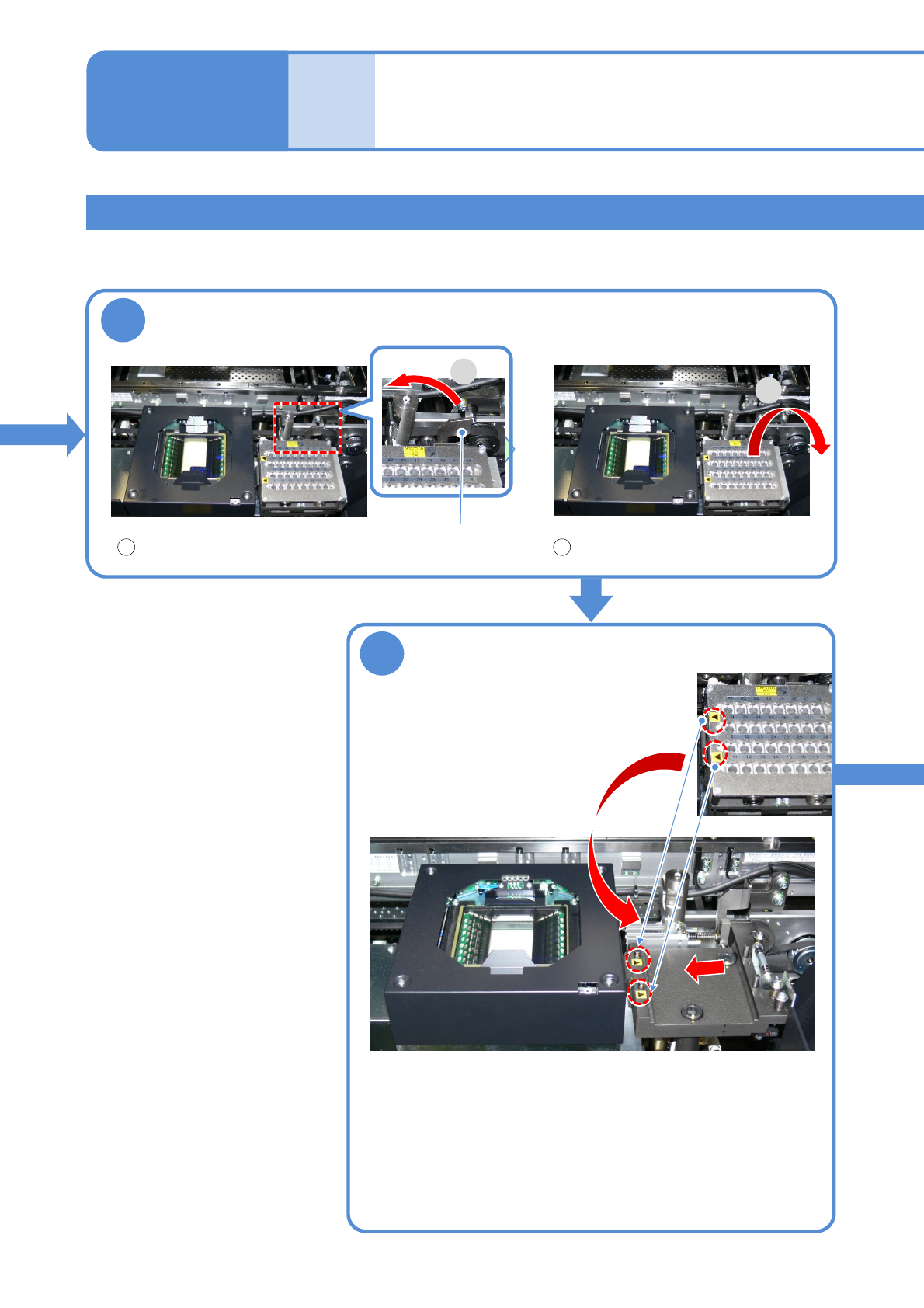 在贴装头的部分对吸嘴交换器的更换方法进行说明,在点胶头部分对试点胶单元的更换方法进行说明,在