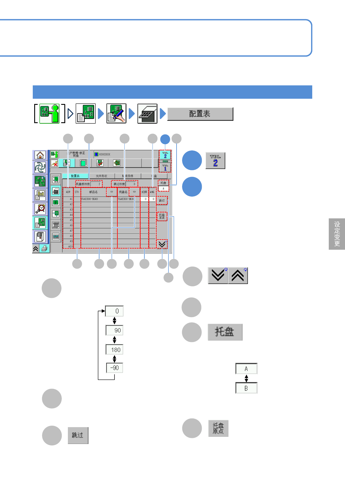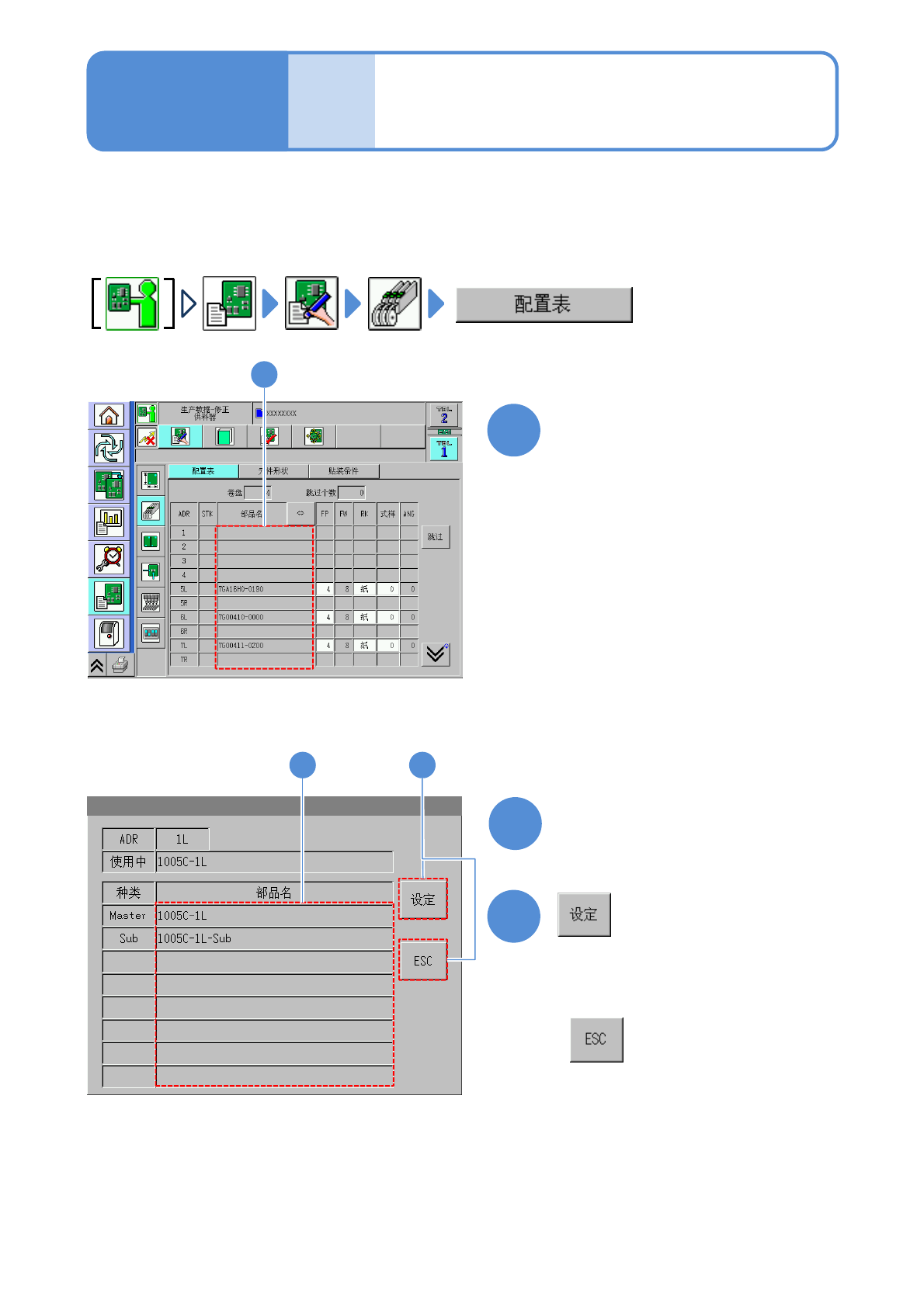 NPM-D3 EJM6DC-MB-06O-02 数据 修改 操作篇 6-1-7 事先在 DGS 登录的 通常使用主元件和代替元件的数据 ,可以确认并且修改。 1 1 选择元件名称 2 3 3 2 ( 副元件被登录 ) 选择副元件 ●代替元件的补充 ( → P.3-3-1) 代替元件的登录 ( 智能料架 ) ●显示的元件是主元件。 ■不设定时 6-1-7 -1