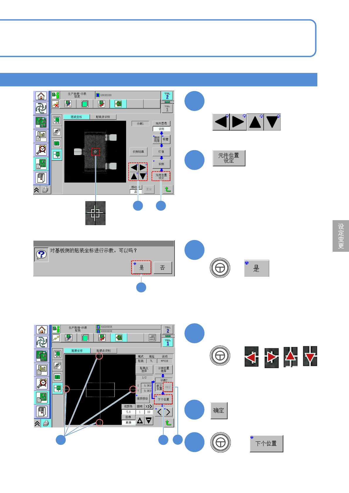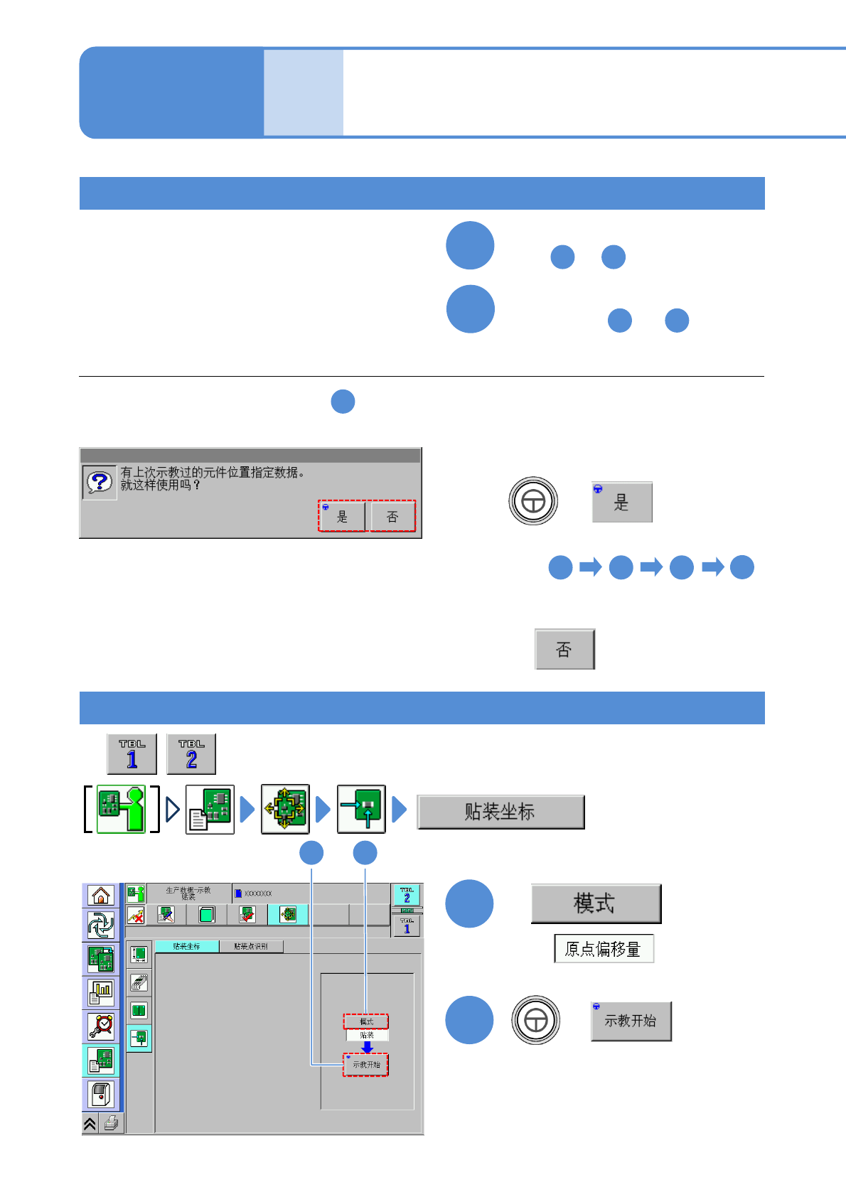 NPM-D3 EJM6DC-MB-06O-02 生产数据 校正 操作篇 6-2-9 贴装坐标校正 11 6-2-9 -21 中 ~ 的操作 元件位置指定的校正 3 24 电极或者销的数量校正 重复 的操作 18 23 25 10 13 以前的校正数据存在时,在步骤 以后,会显示以下提示。 2 ■使用以前的数据时 ●之后的顺序是 部品 4 点でティーチングする 3 在校正模式选择原点偏移量 1 1 选择 在 2 2 + ~ ● 都需要进行…