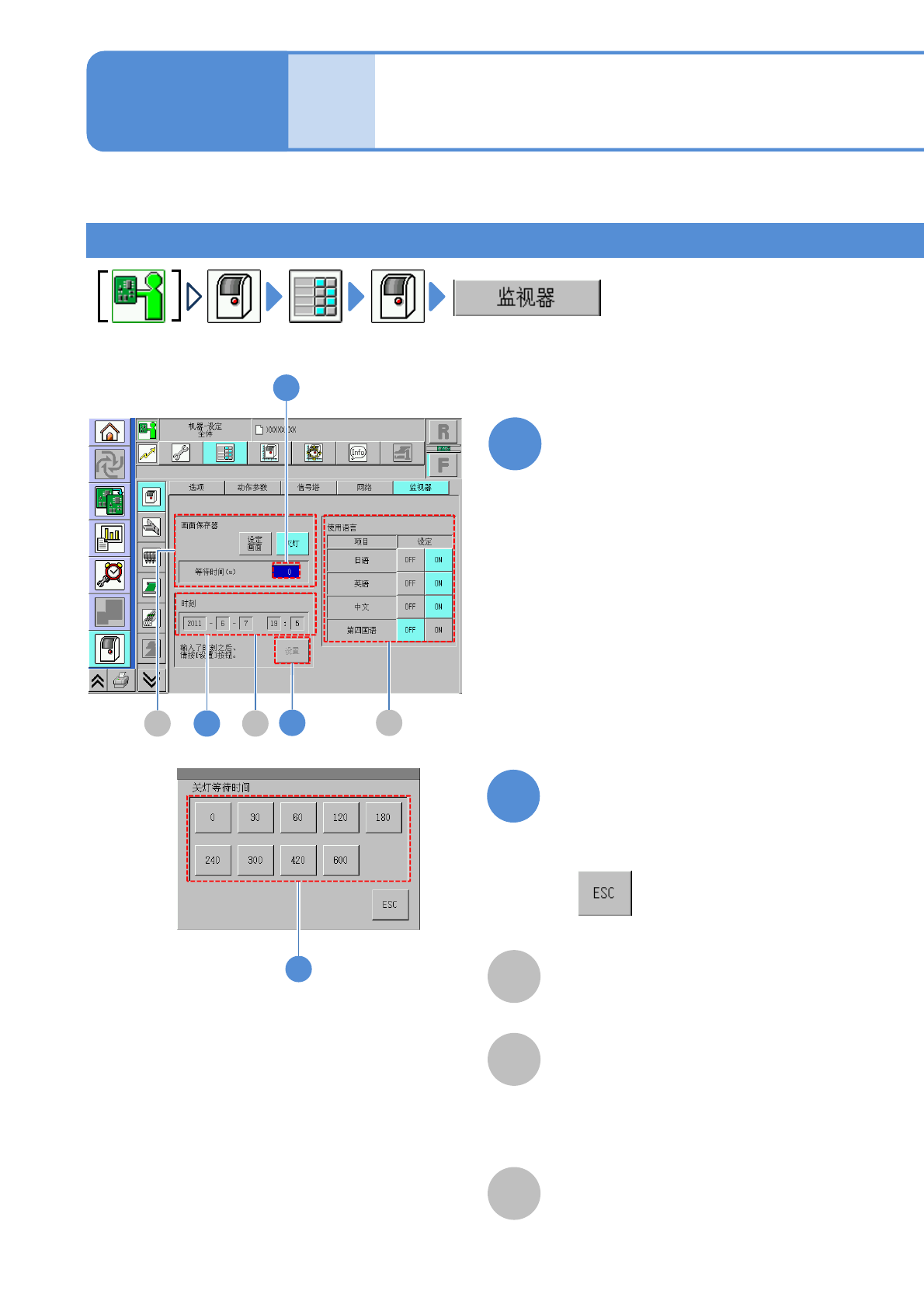 ■变更画面保存器的灭灯等待时间时