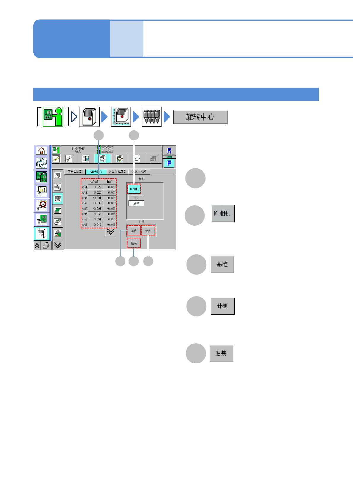 NPM-D3 EJM6DC-MB-07O-0 2 机器参数 确认各吸嘴贴装头的旋转中心的偏移值 ( 校准的结果 ) 。 B 「旋转中心」表示数值切换到多功能 识 别照相机识别元件时的数值。 A 旋转中心 X[mm]/Y[mm] 转转中心的 XY 坐标。 测量后,切换为暂时保持的数值。 C 显示经时变化补正时的旋转中心基准 值。 D E 经时变化补正时,距离基准旋转中心 的变 换量。 贴装头旋转中心的确认 操作篇 7-3-5 7-3-5 …