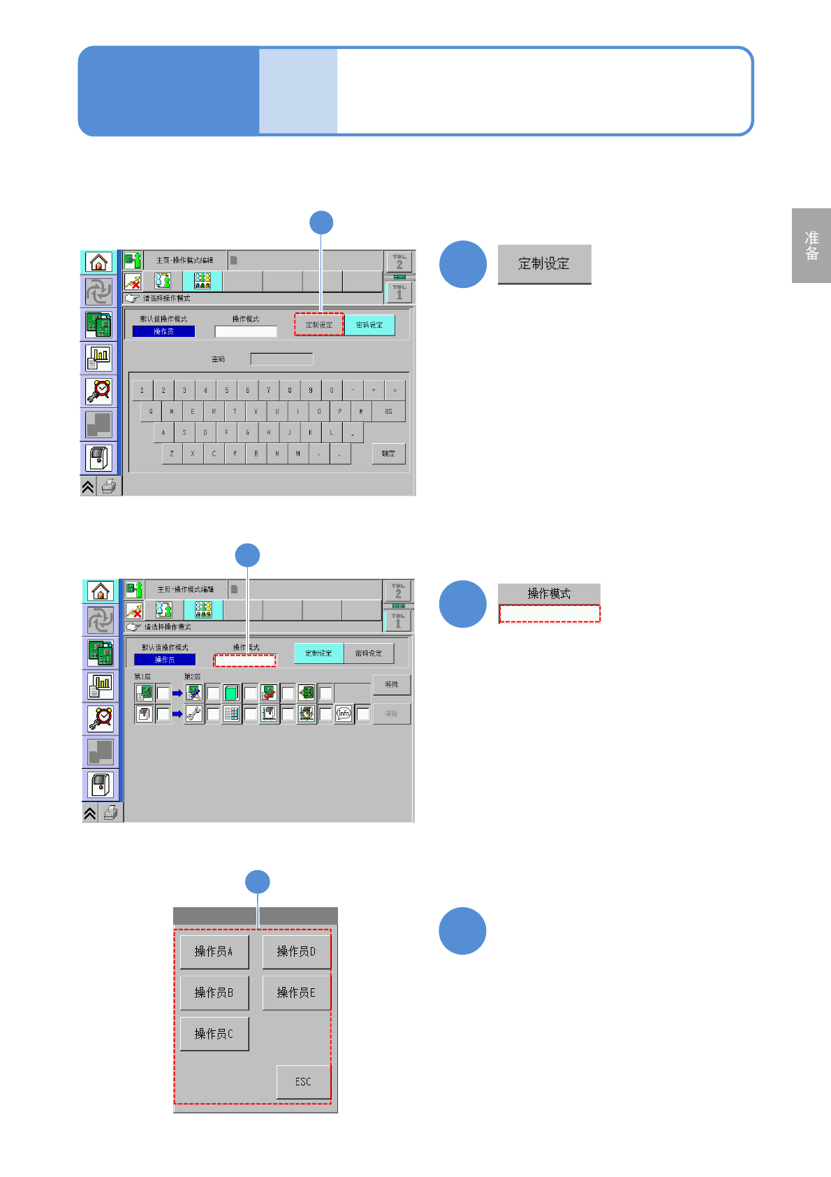 NPM-D3 EJM6DC-MB-02O-02 2-1-5 -2 C D 4 选择操作权限的范围 A 第 1 层的操作权限的范围 B 第 2 层的操作权限的范围 C 第 3 层的操作权限的范围 D 第 4 层的操作权限的范围 ■授予操作权限时 ■不授予操作权限时 4 ■返回默认状态时 A B 5 ■授予第 1 层的 以外的操 作权限时 5 基本 操作 定制设定 2 操作篇 2-1-5