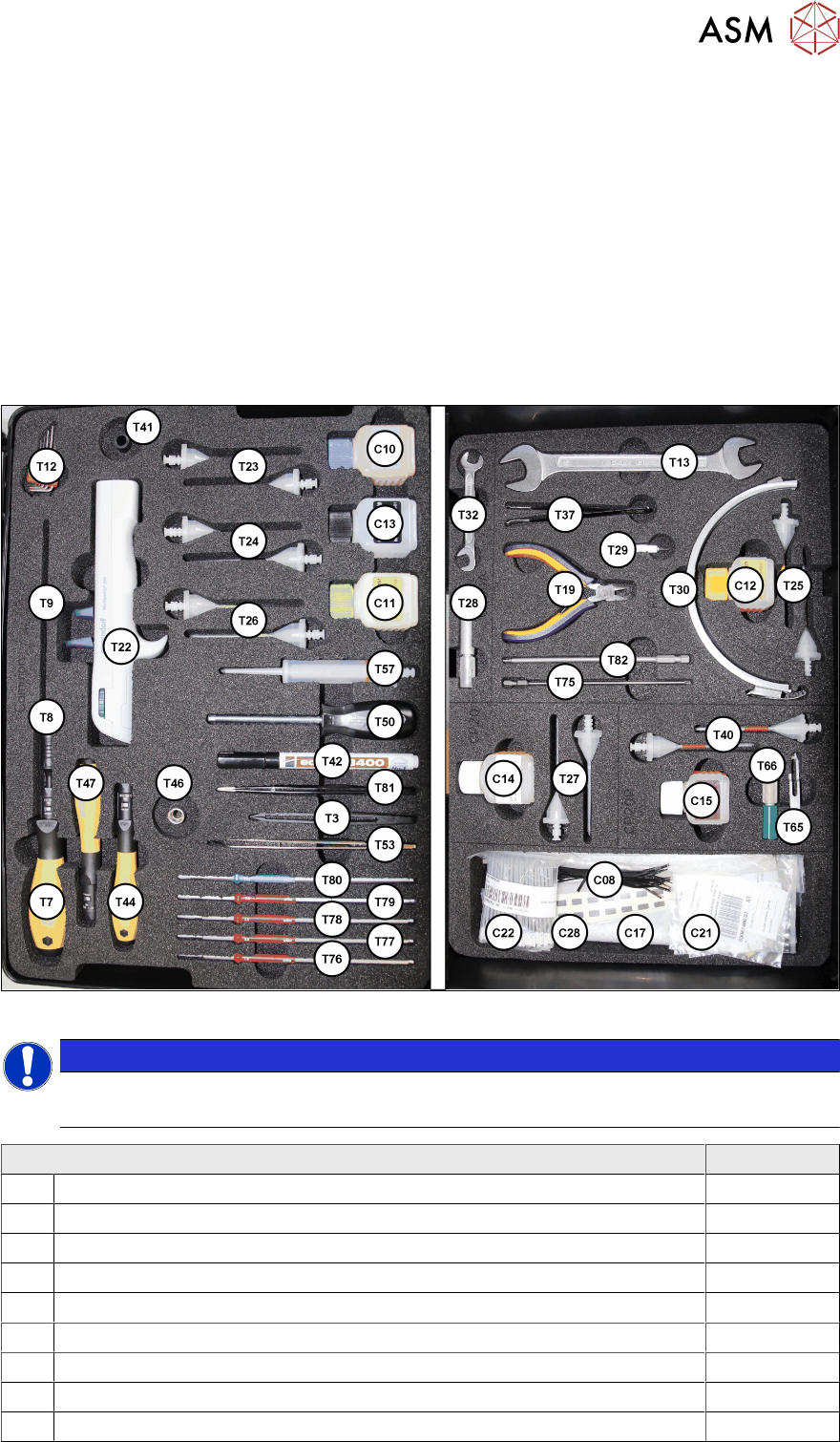 1 Introduction 1.5 Tools required, measuring equipment and materials 12 Service Manual SIPLACE SpeedStar (C&P20 P / C&P20 M2) 03/2018 Tools contained in the HMK: Item no. T24 Combitips advanced 0.1ml black 03078…