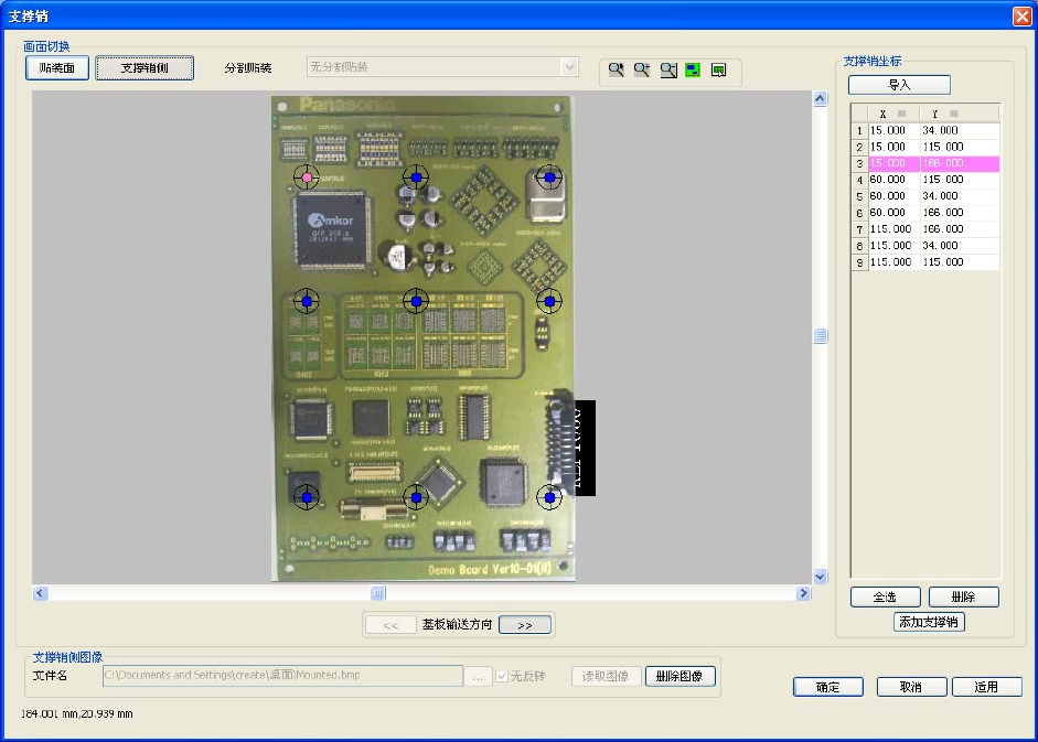 通过读取实装面背面的基板图像,支撑销自动更换时的销配置位置和元件的干扰状况可以通过图表进行确认。