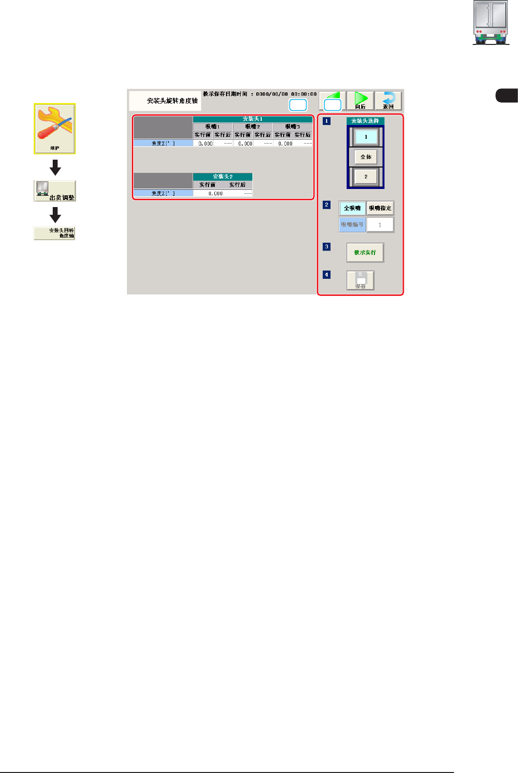 (1) 选择实行安装头旋转角度补正值教示的安装头 (1、2 或全体 )。