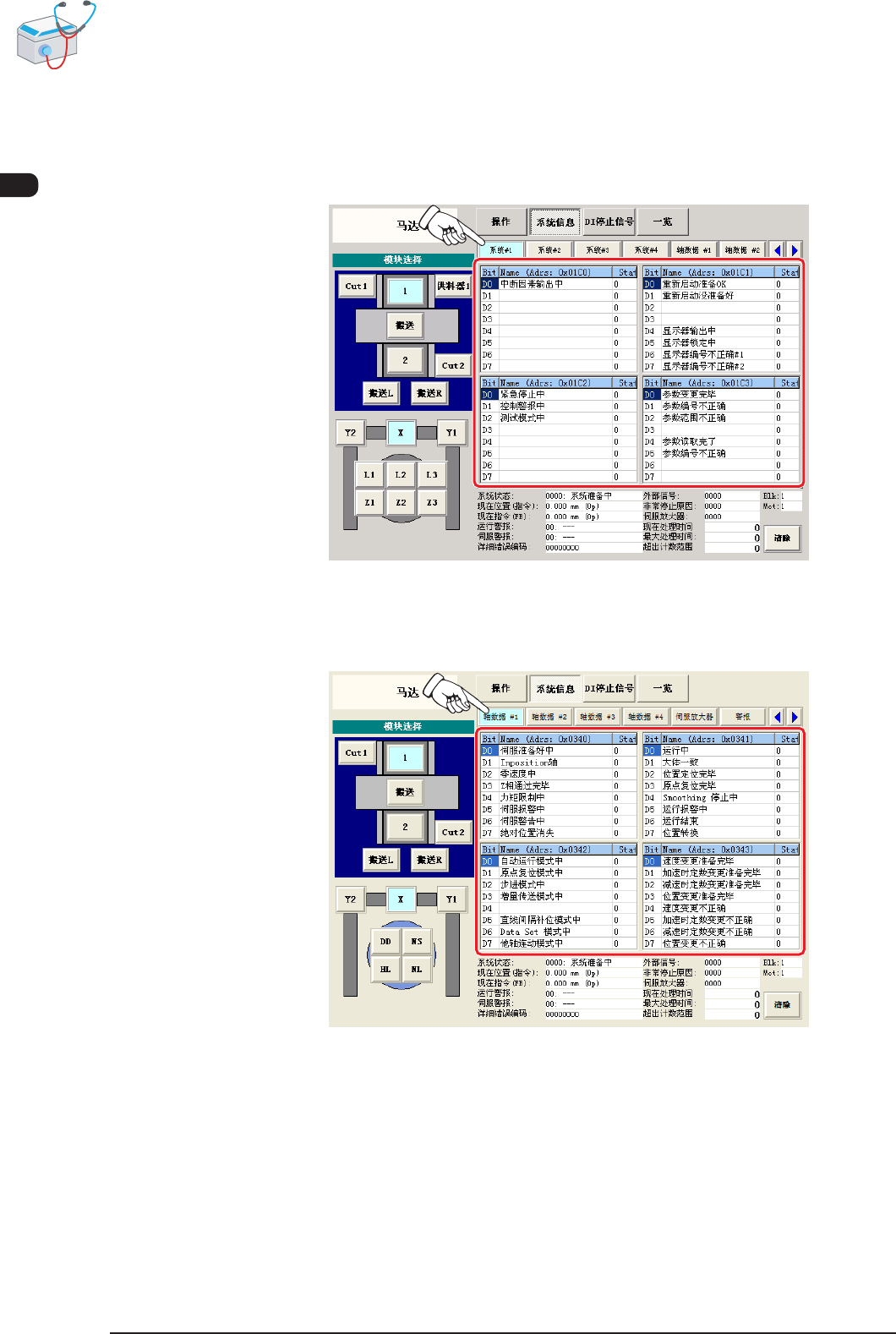 轴数据 #1 ~ #4 显示轴数据 #1 ~ #4 的状态。