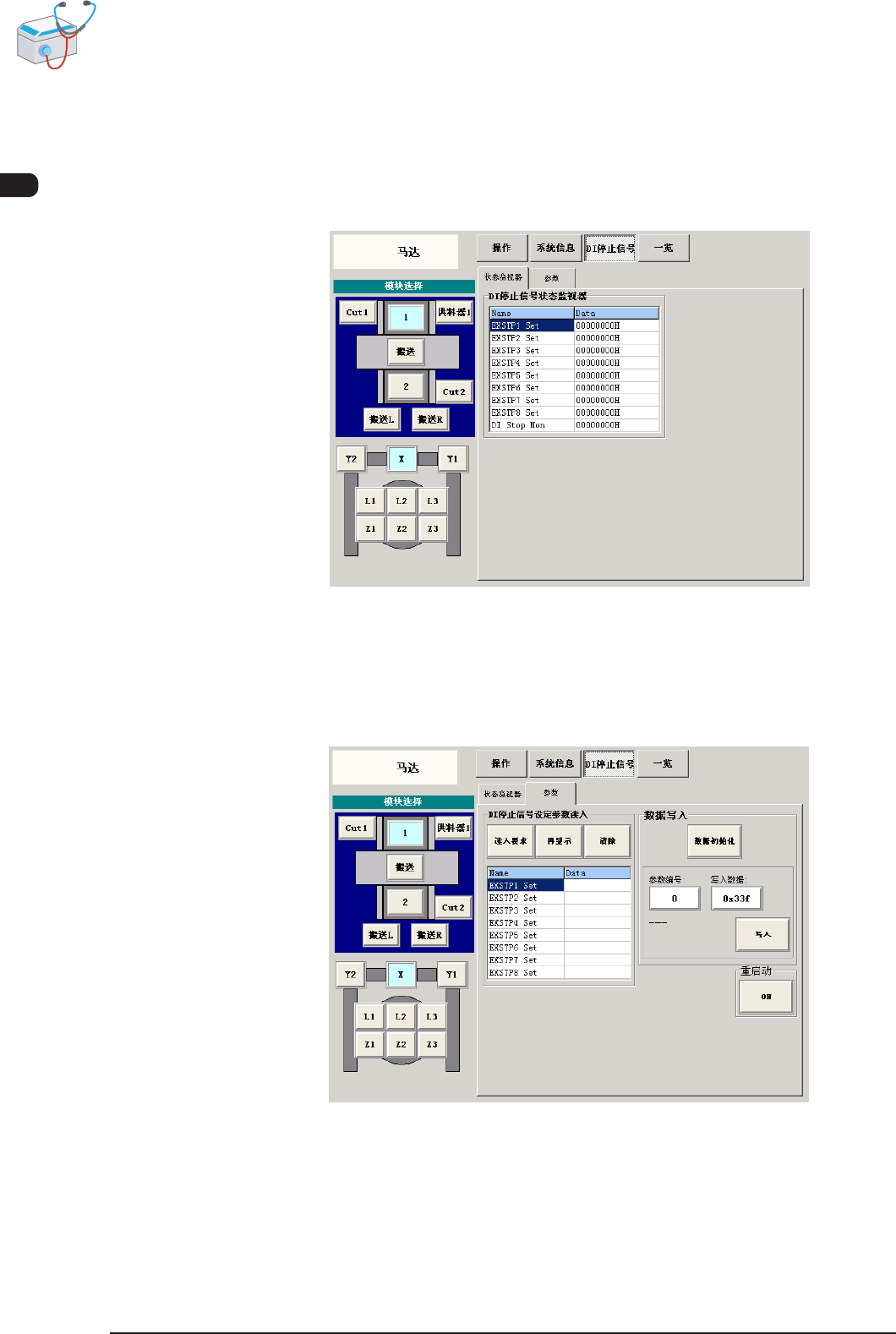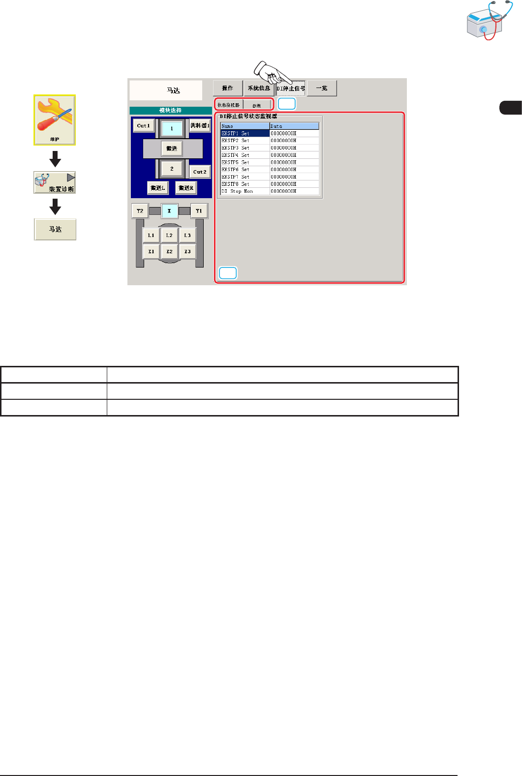 状态监视器 显示 DI 停止信号状态监视器的状态。