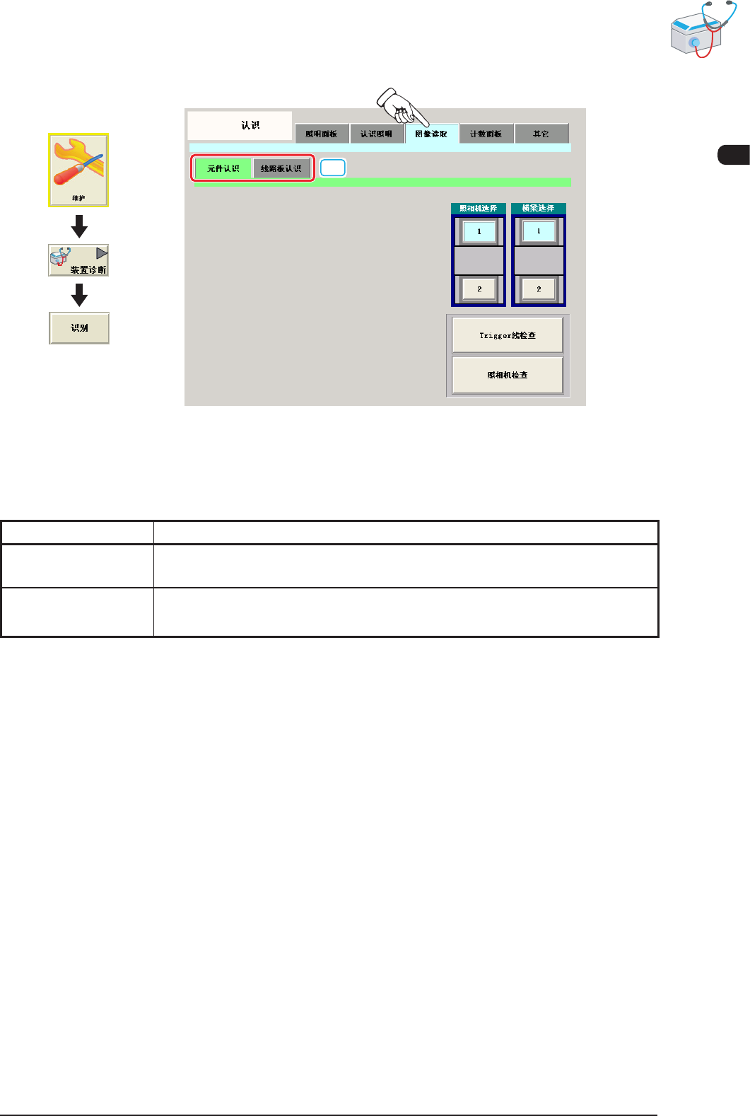 元件认识 ( 识别 ) 用元件识别照相机读取图像,确认 Trigger 线检查和照相机动作等。