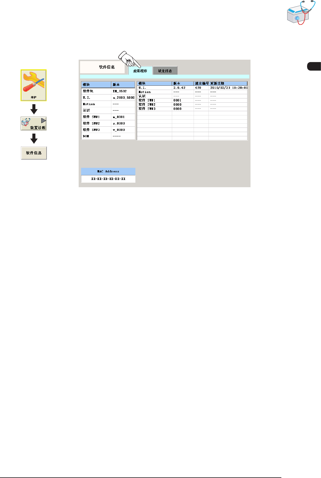 显示每个模块的应用程序版本、应用程序更新时间、MAC Address。