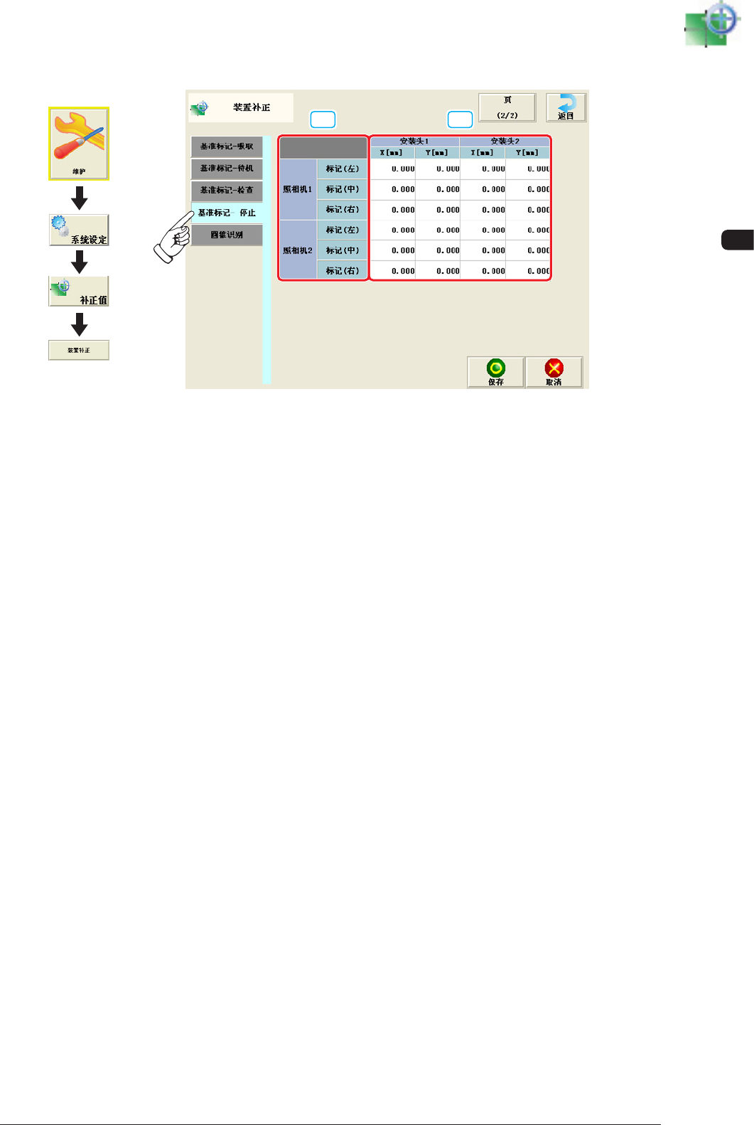 调整对照相机以及各标记的基准标记 ( 停止确认 ) 补正值。
