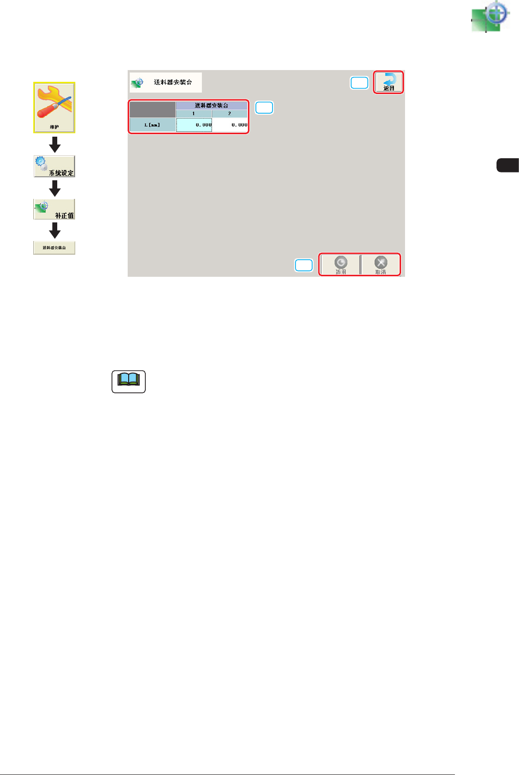 是调整对送料器安装台 1、2 的设计尺寸的高度方向偏离的补正值数据。