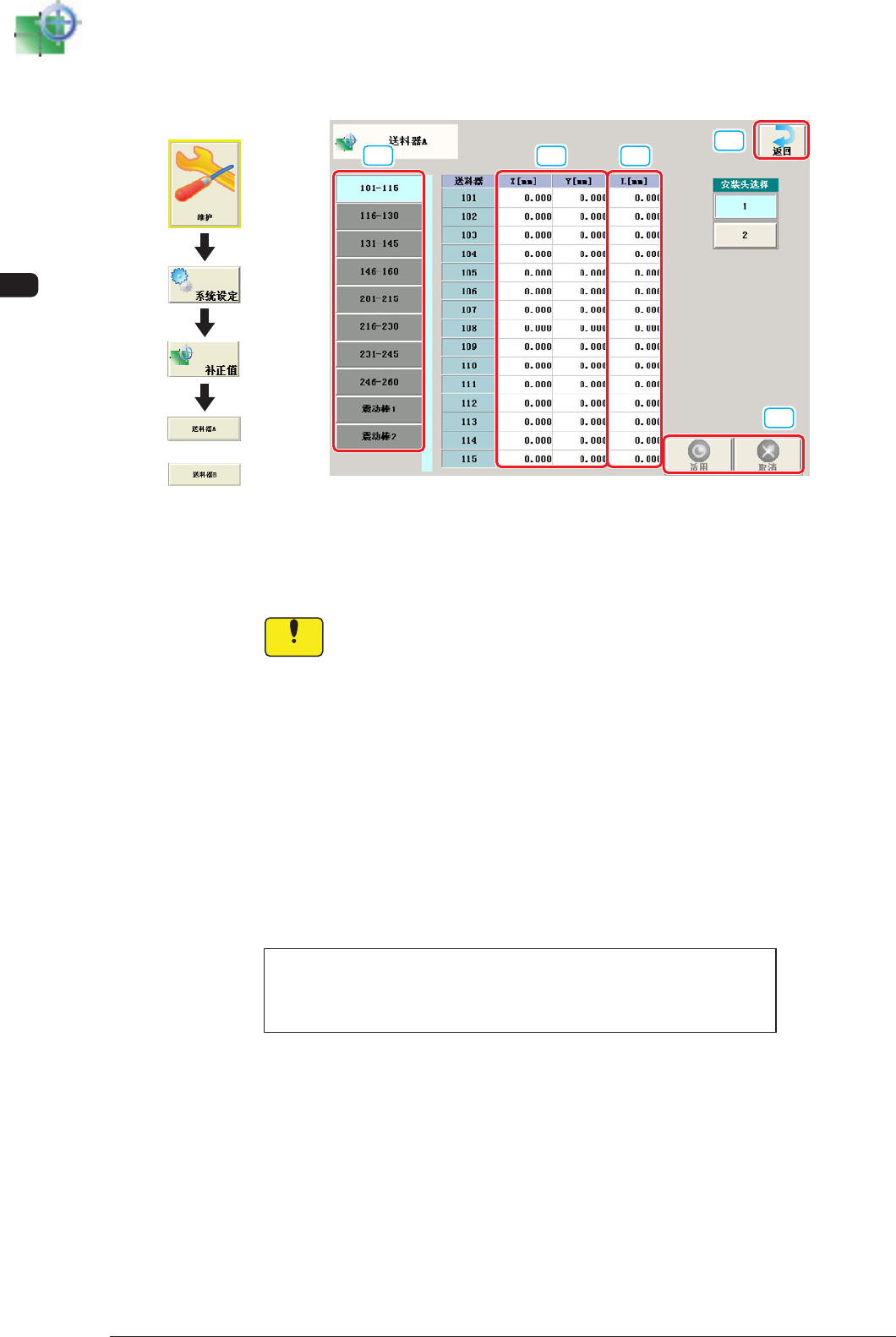 是调整对每个送料器 No 的送料器对吸取位置设计尺寸的位置偏离的补