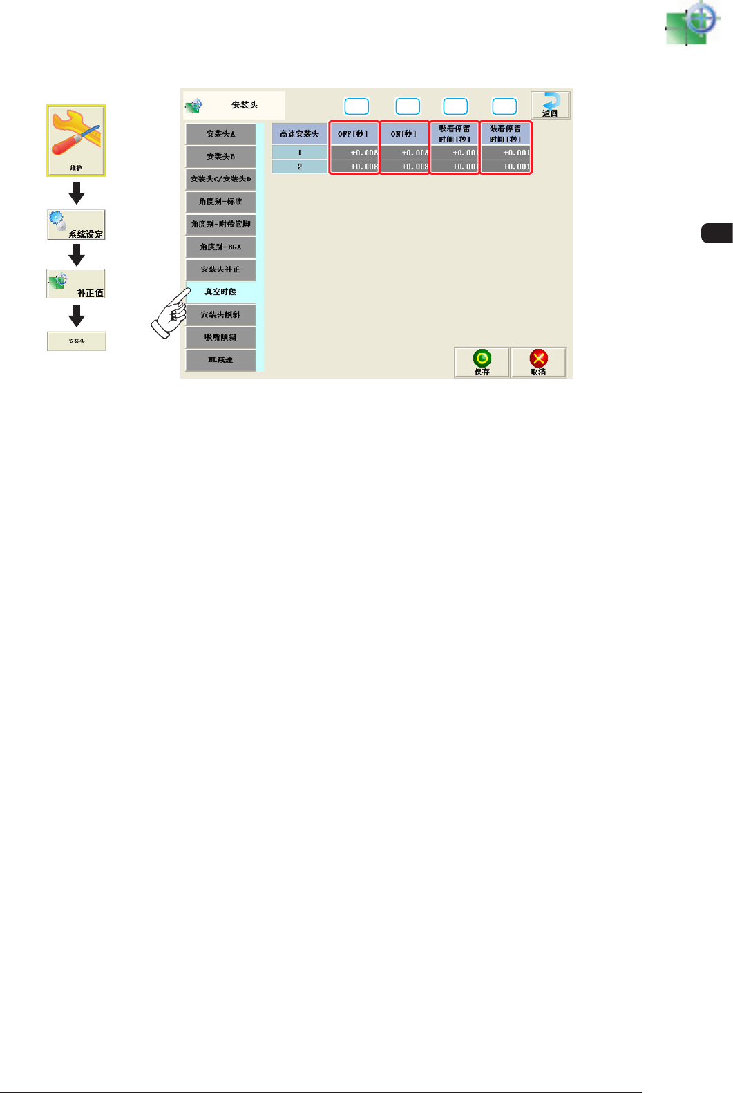 真空时段 OFF 数据以到达 NL 轴下至点前 10ms 为基准,输入正值为真