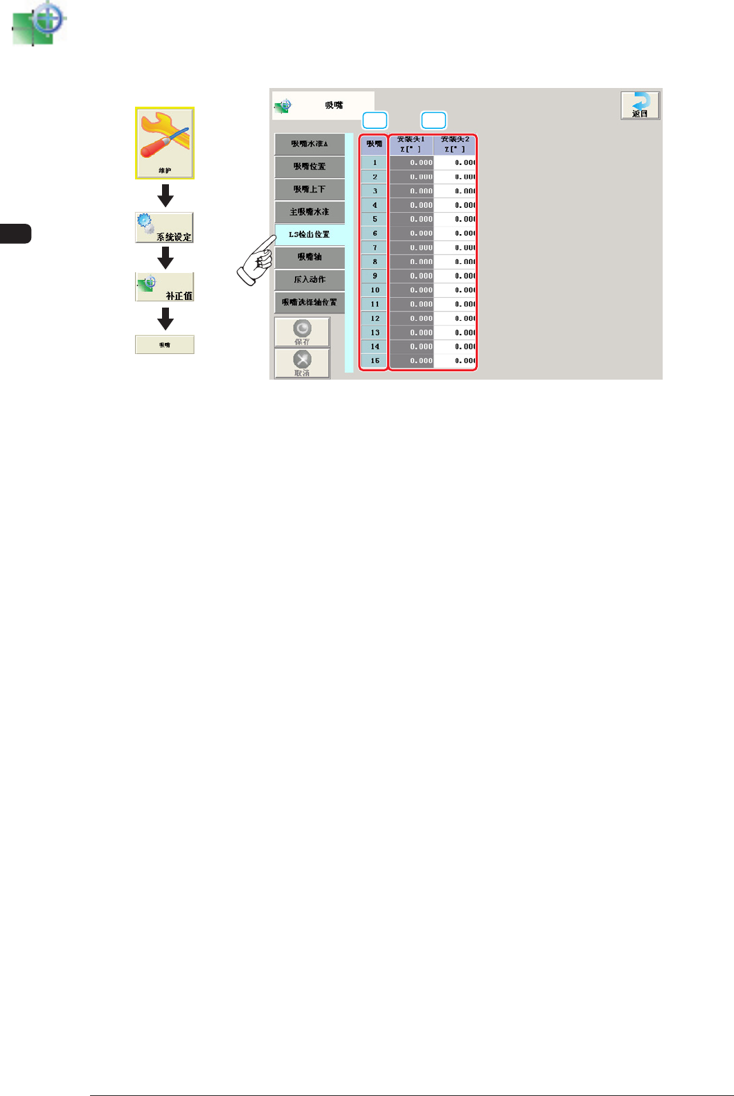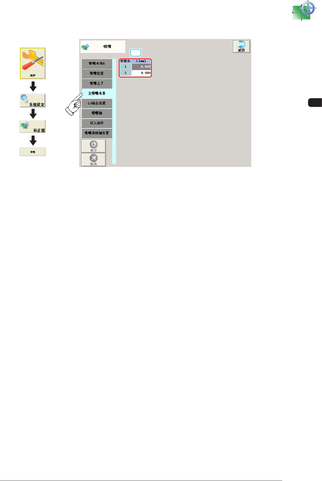 是主吸嘴下面水准的基准位置 ( 线性传感器读取值 )。在吸嘴上下轴原