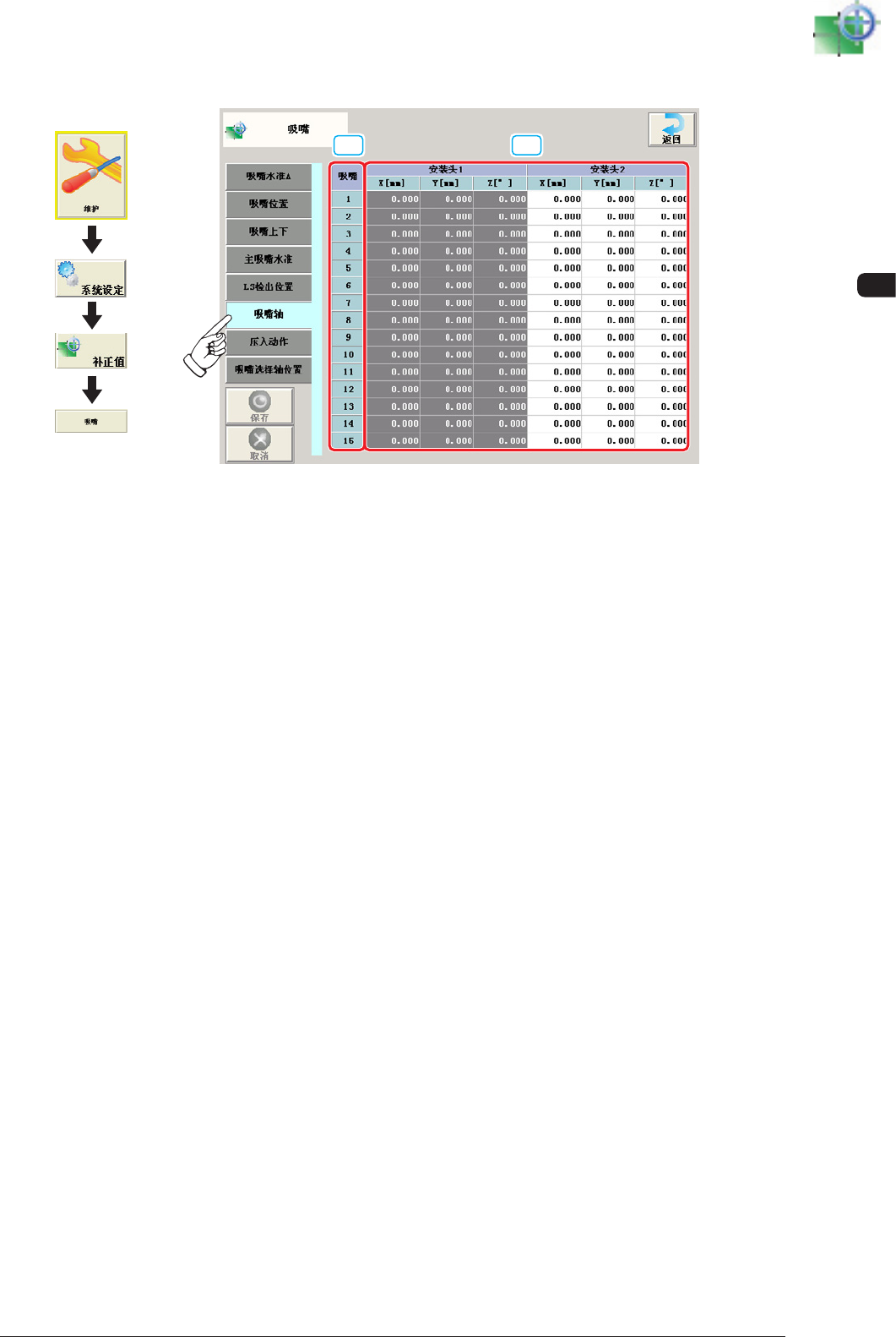 吸嘴更换用的补正值数据。