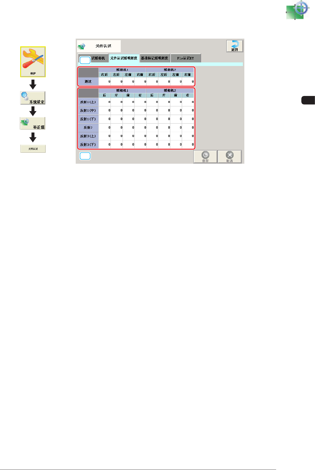 设定元件识别照明的辉度水准。