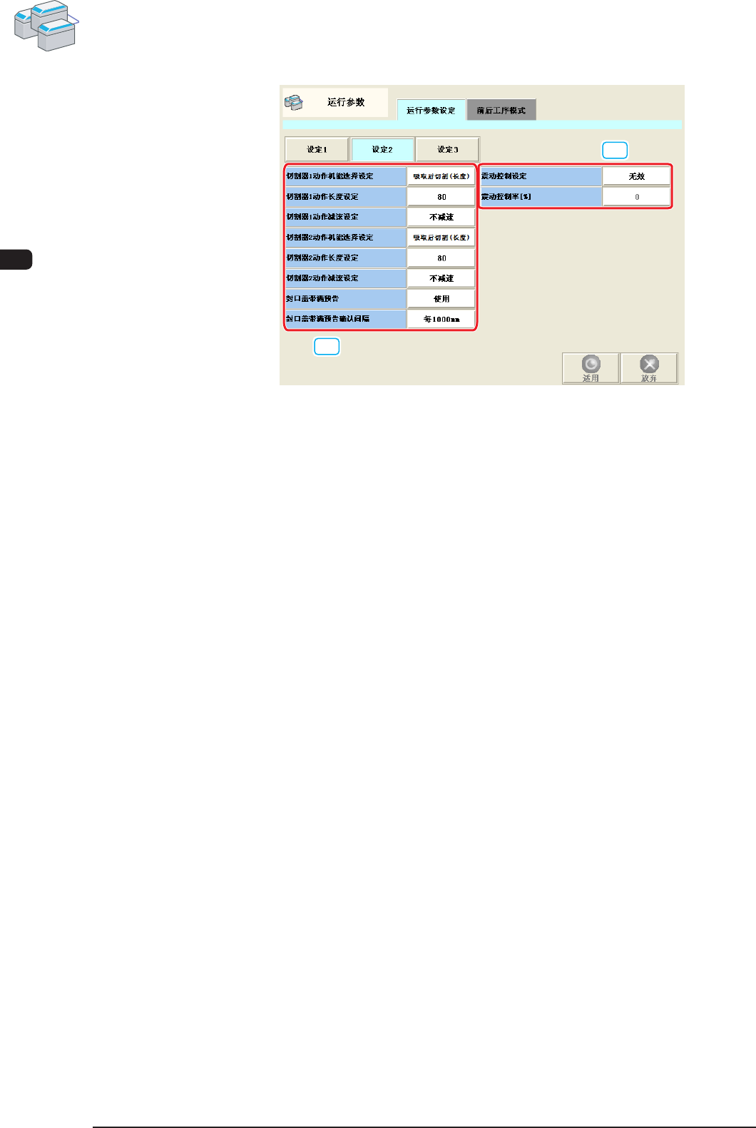 对各切割器的动作设定以下項目。