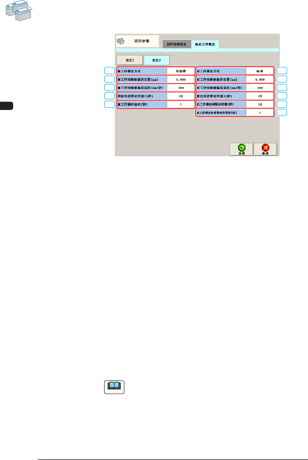 设定与后工序装置的线路板输送。