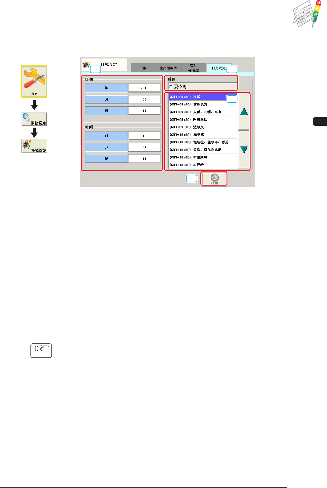 可以设定装置的系统时间 ( 年、月、日、时、分、秒 ) 及时区。