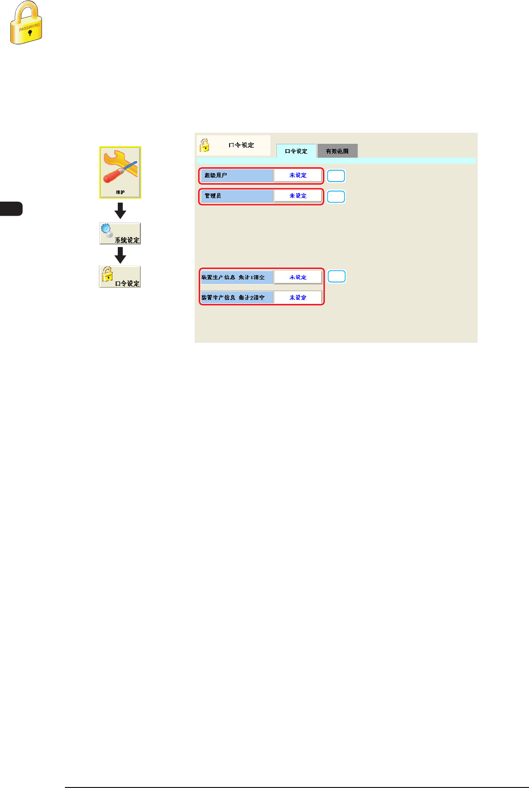 口令被设定或变更,在 [ 口令设定 ] 按钮的右侧上用红色文字显示出