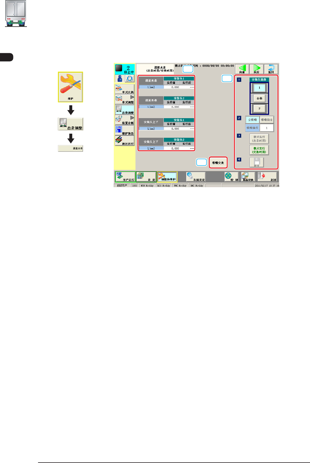 [2] [ 吸嘴交换 ] 按钮