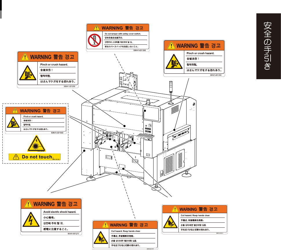 また、本項で示されているラベル以外の安全上の注意事項に関しては、「1. 安全について」を参照してください。
