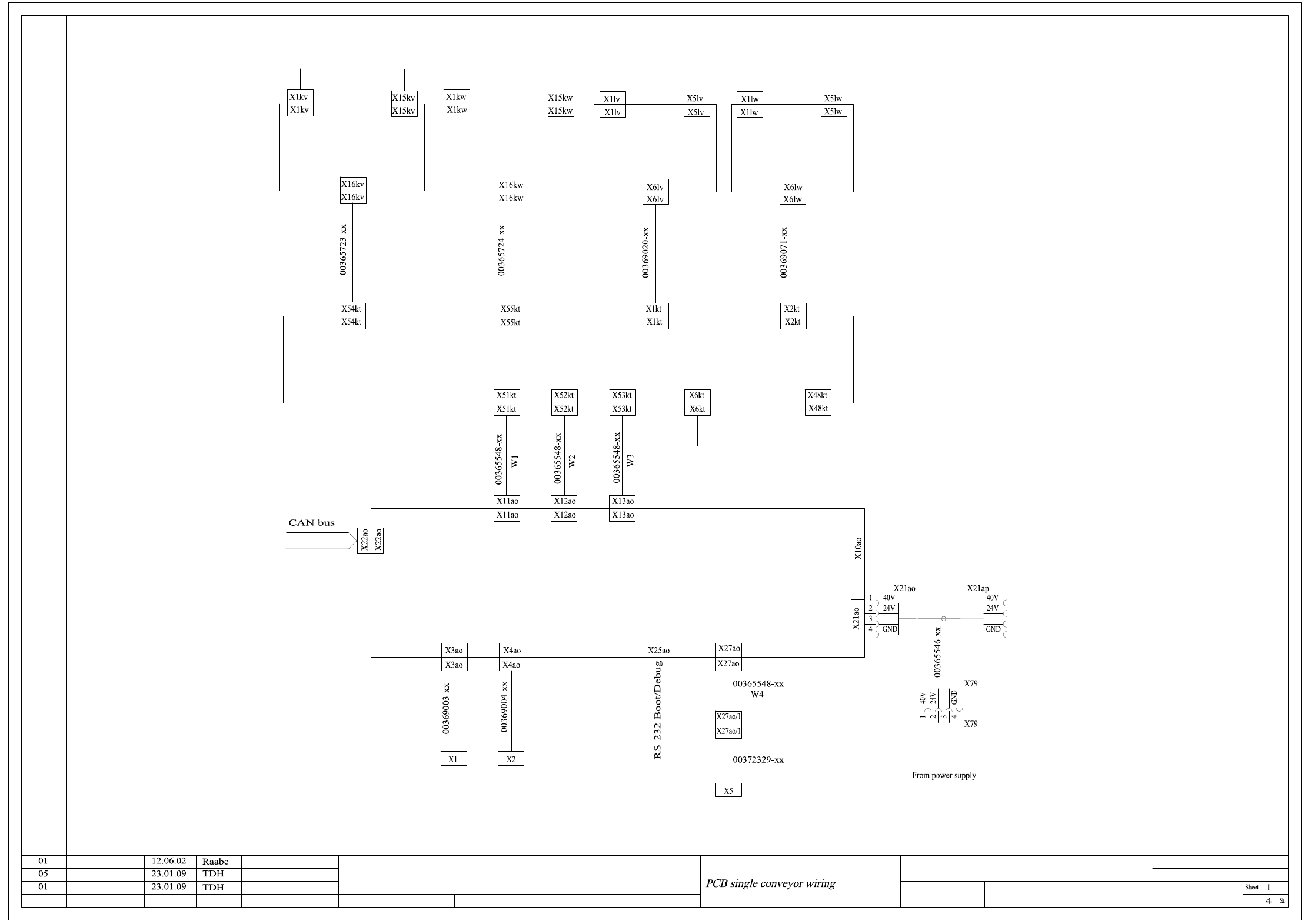 PCB single conveyor wiring (sh. 1 of 4)