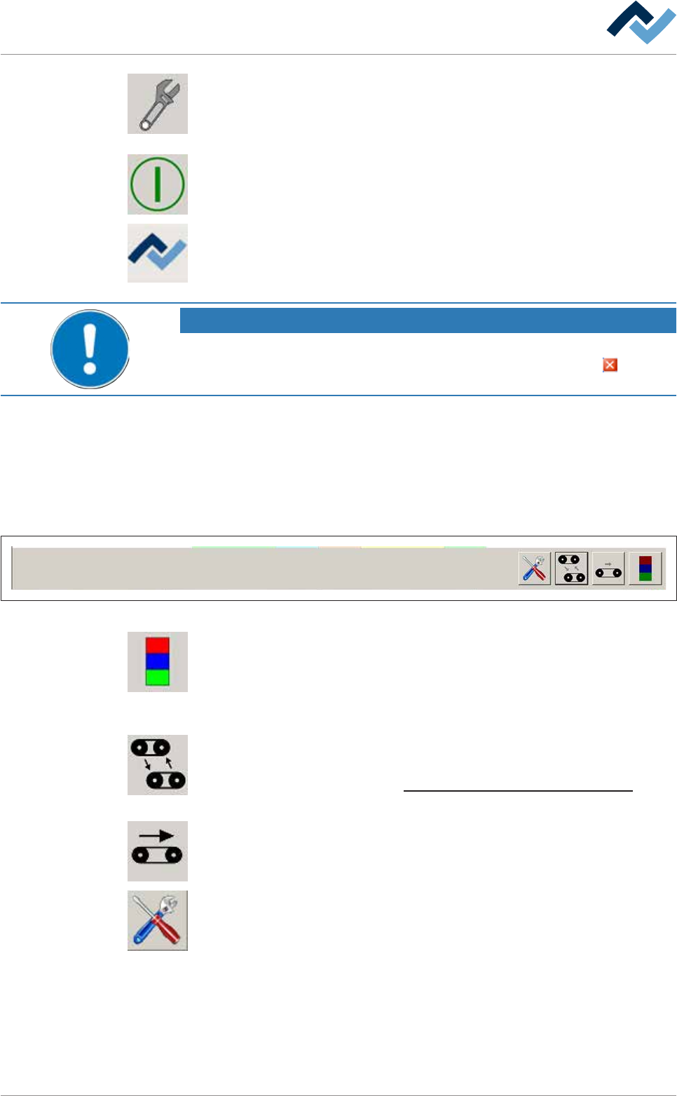 All conveyors on. Click on this button to switch on all the machine conveyors simul-