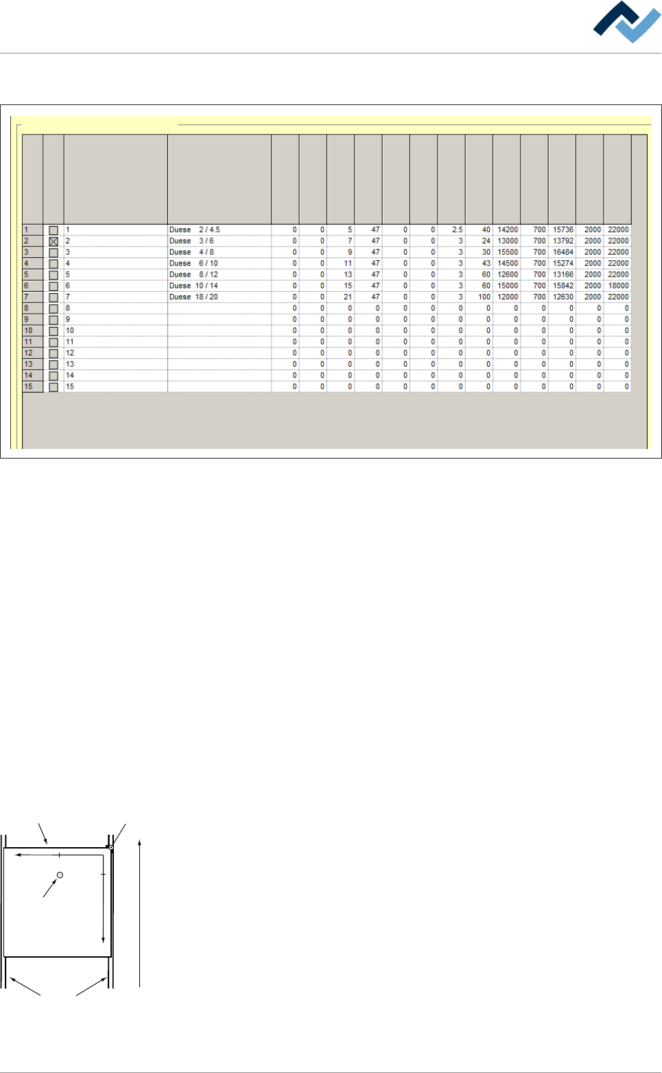 Note: For different nozzles, also different gradients must be determined. The result