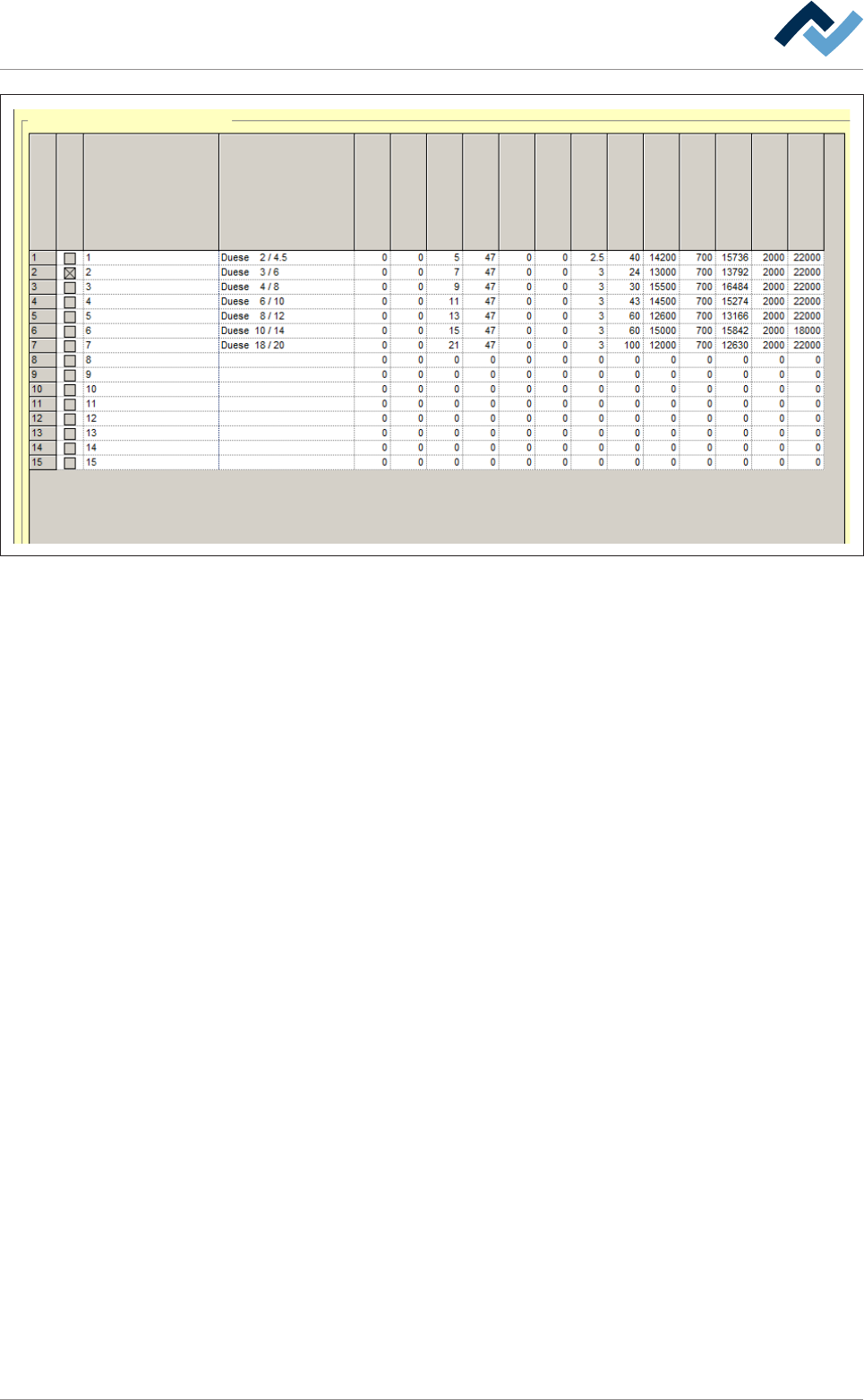 Fig.70: The solder nozzle data table. The values for 7 commonly used, rotationally symmetric nozzles are already stored in the fact-
