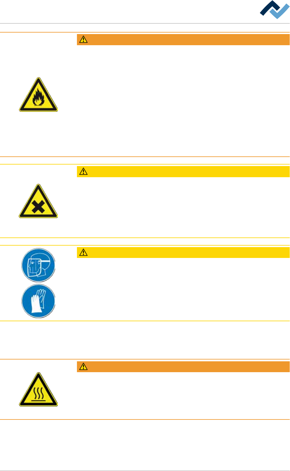 Risk of death or severe injuries due to flammable materials! Fire hazard!