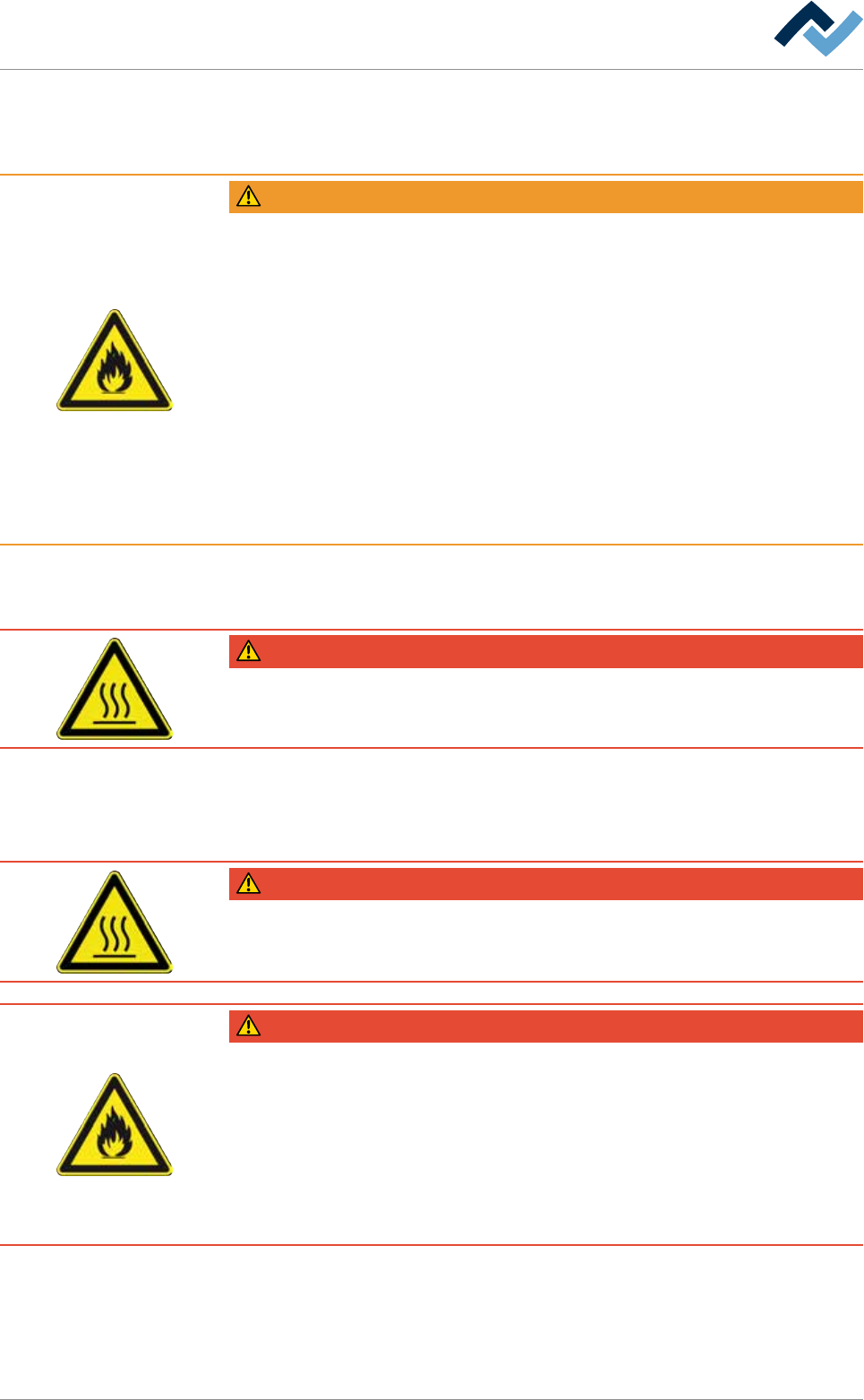 Risk of death or severe injuries due to flammable materials! Fire hazard!