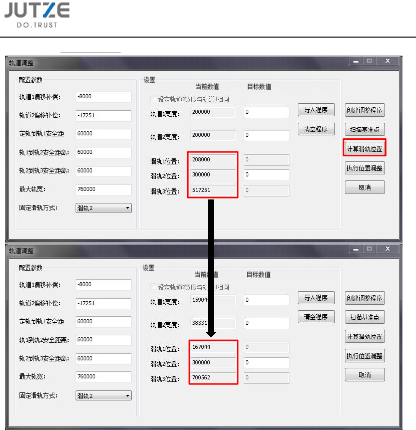5.5.3.5 点击计算滑轨位置,计算得出实际滑轨所在位置。