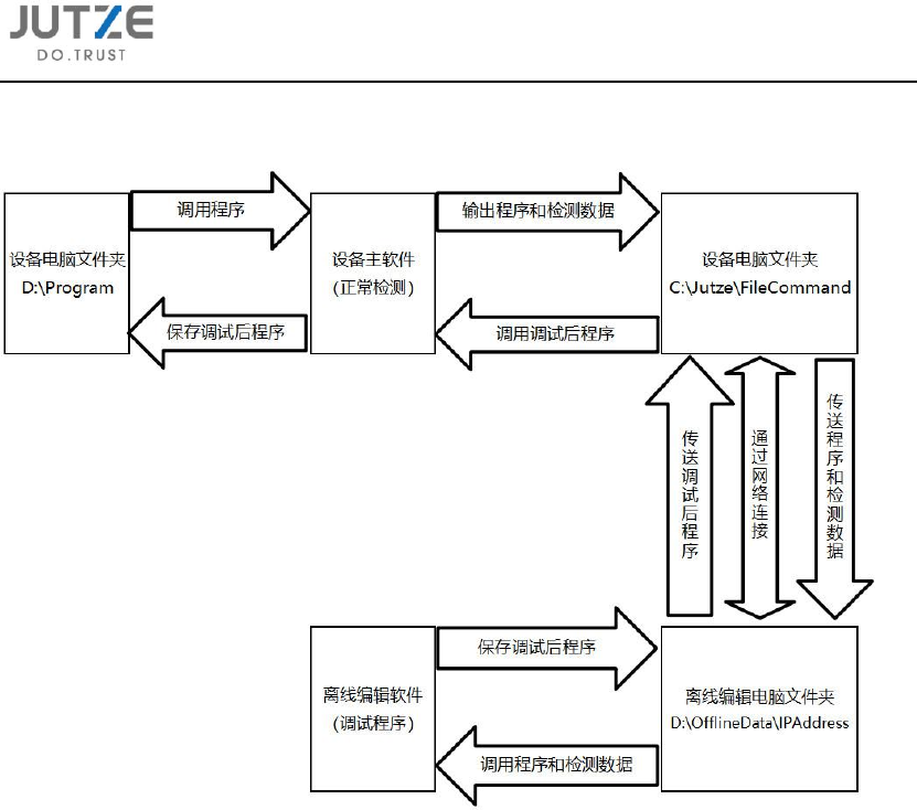 第五章 设备 操作选项设定 V 7.0.4584.0-1 www .jutze. com.cn 30 / 39 5.6 不停线调试程 序( 模式一 ) 5.6.1 流程示意图