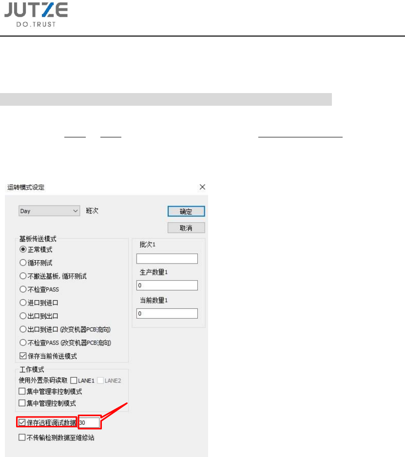 5.7.2 在软件运行 - 自动后的运转模式设定界面,勾选保存远程调试数据(数据保存在