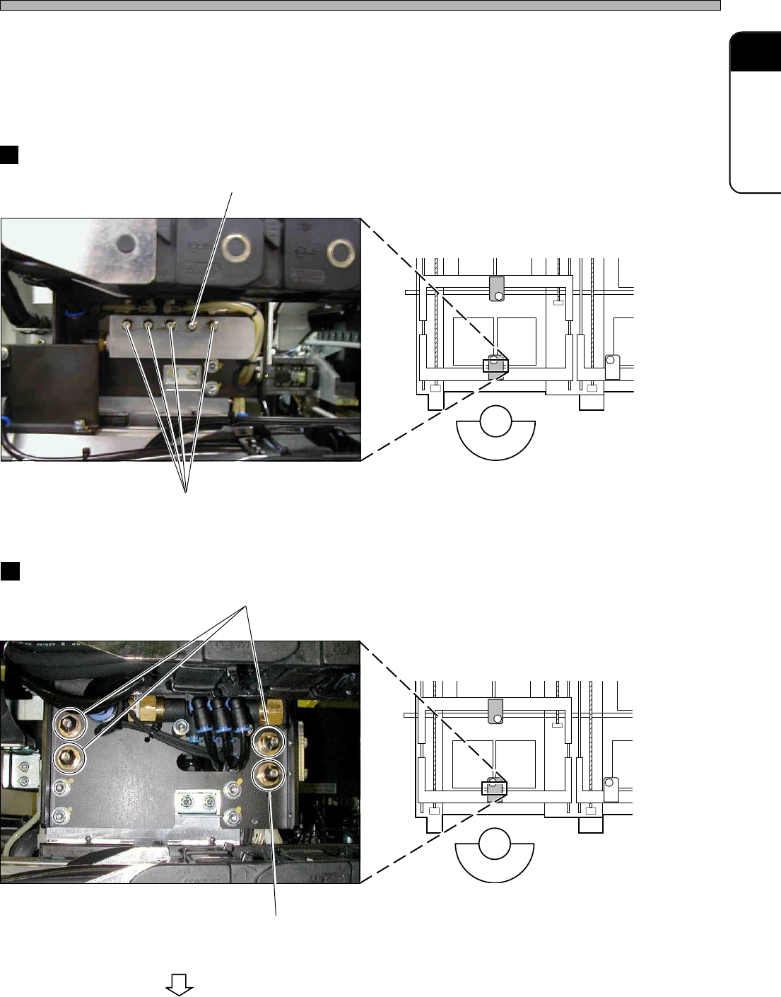 Page 1-57 REGULAR MAINTENANCE 1 Check Every 140 Hours (Once a Week) 444C-E-MMA01-A07-01 10. Lubricate the X-axis linear bearing and X-axis ball screw on the front and rear sides through the grease nipple. [Grease : SHELL…