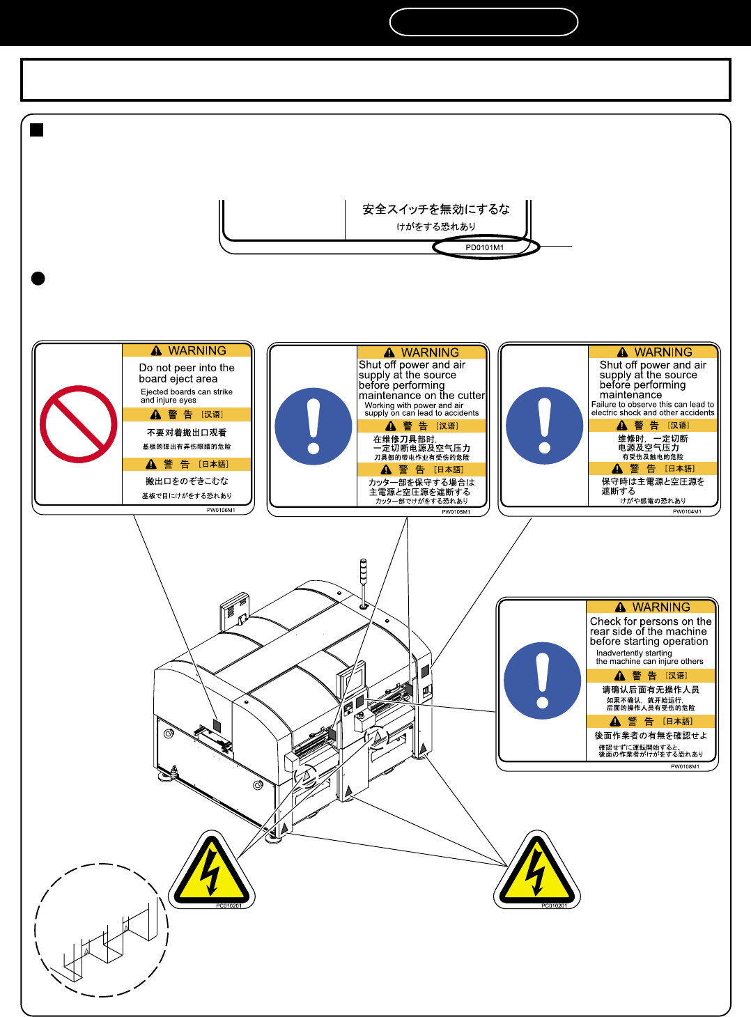 The following warning labels are pasted on this machine. Follow the instructions on each label. If a label has