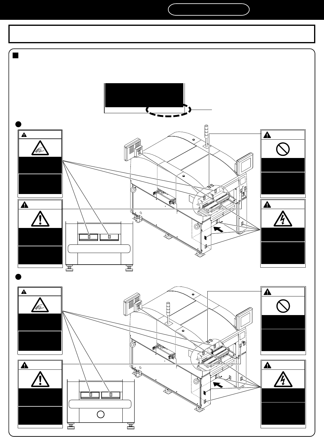 The following warning labels are pasted on this machine. Follow the instructions on each label. If a label has