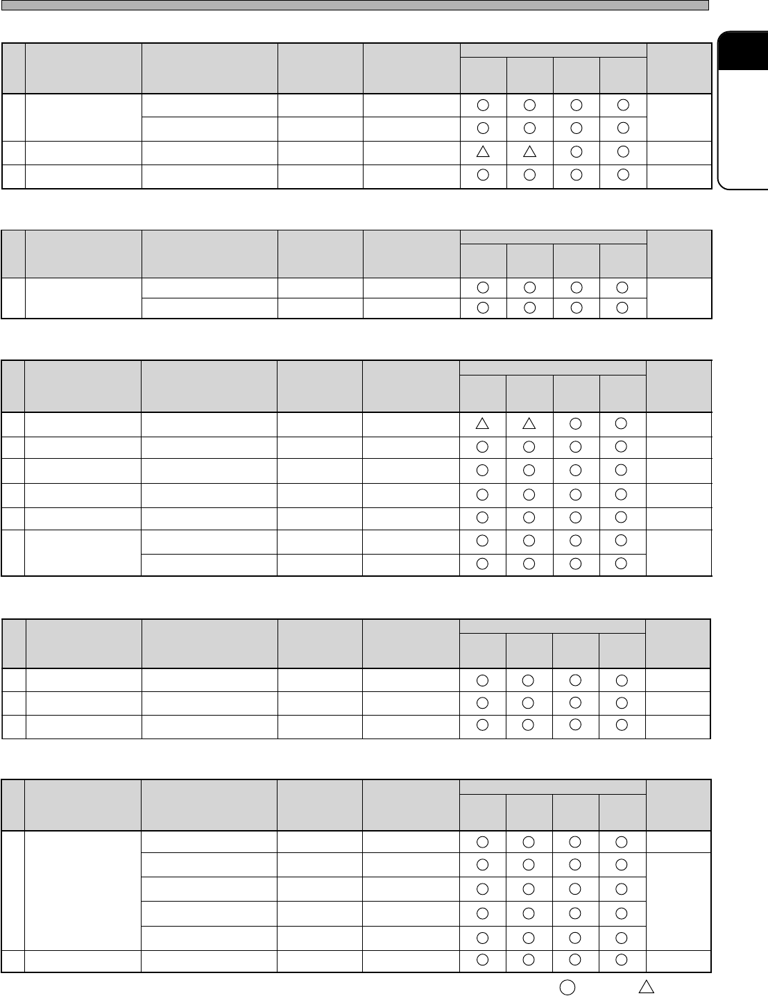 ∗ When either the operation hours or the period of time is exceeded, perform the checks.