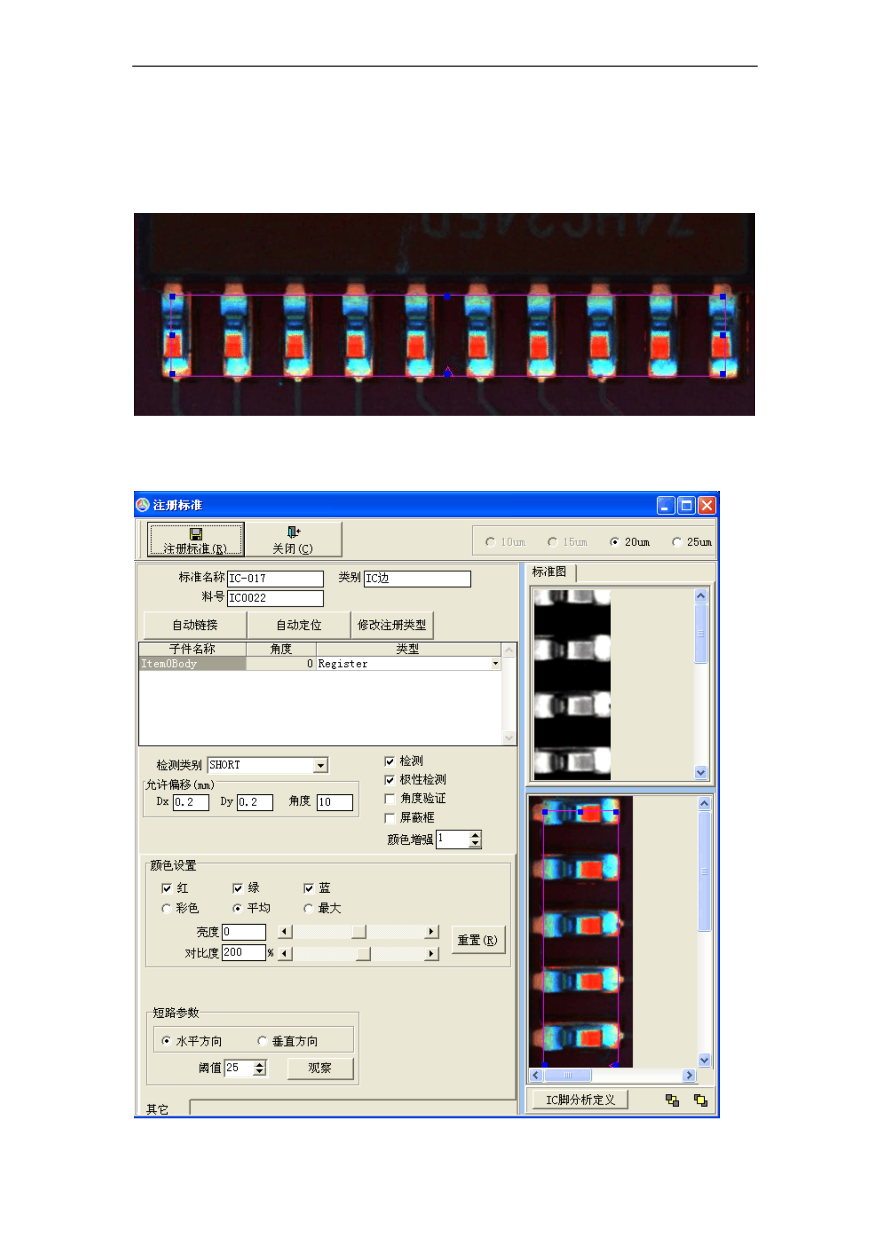 箭头指向元件本体。画好后选择按钮用选中检测点自动添加,完成注册标准。