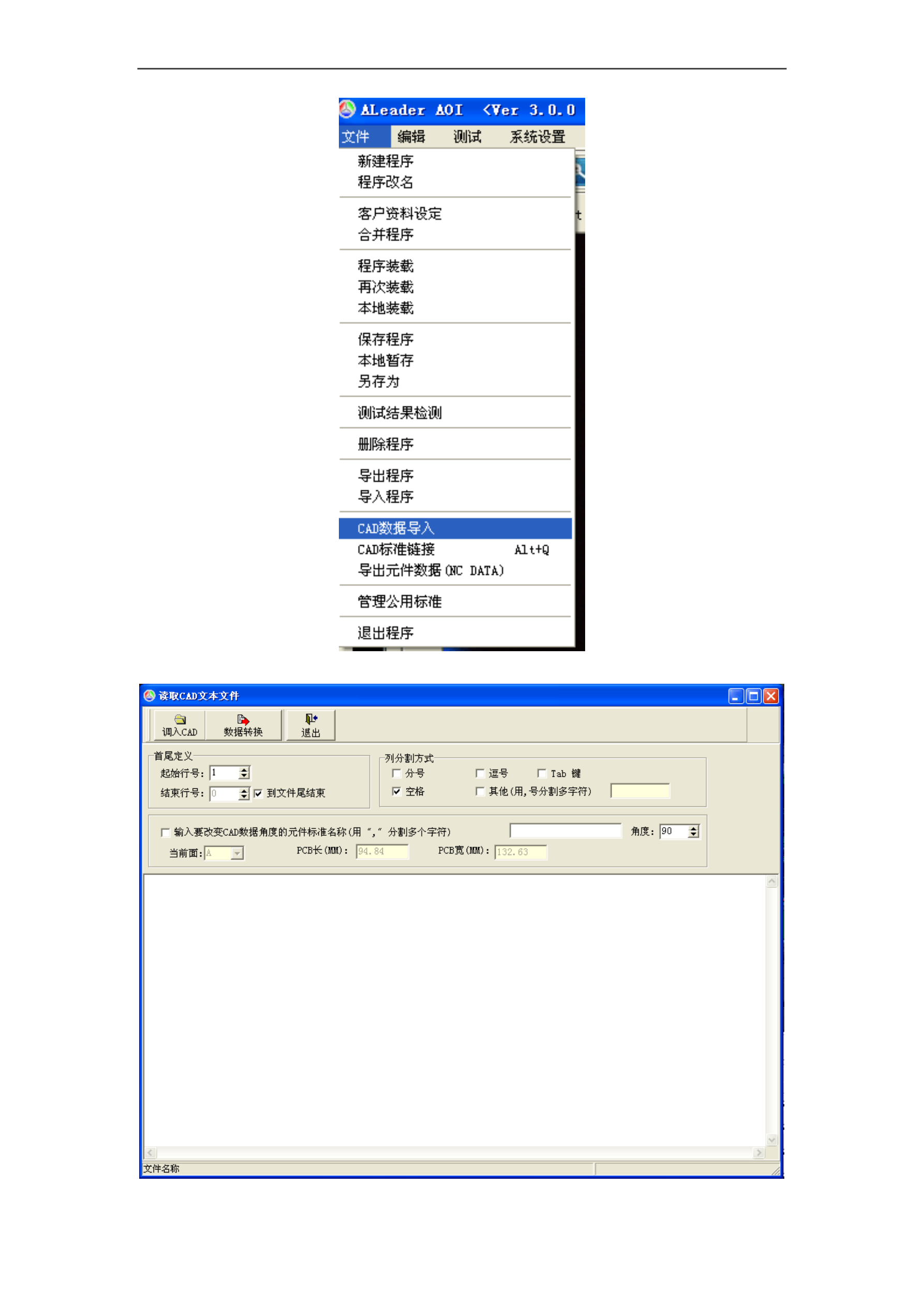 完成程序编写前三步聚,到 MARK 设置完成后,在文件菜单选项中选择 CAD 数据导入: