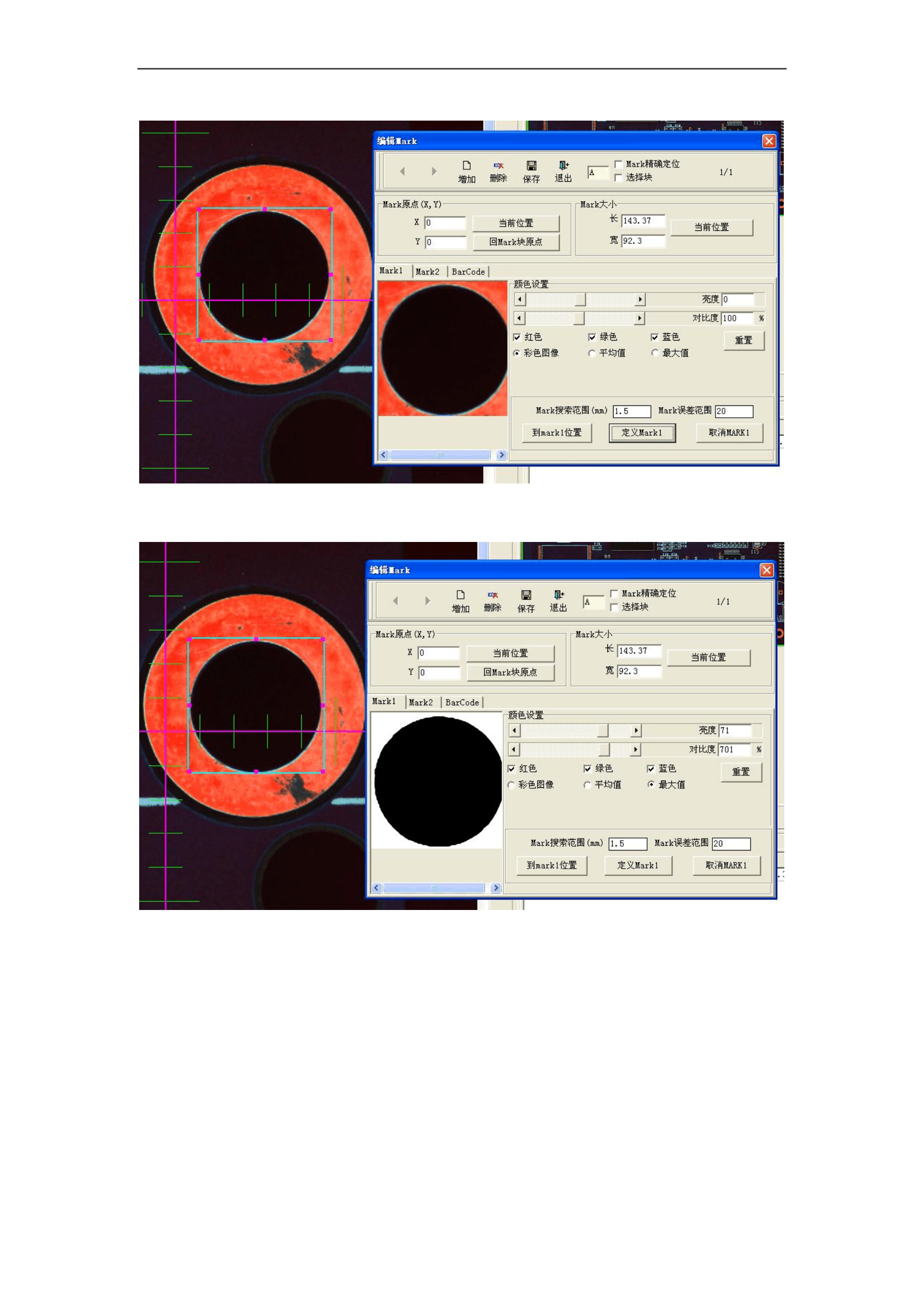 MARK 设置主要是用于检测之前或者是编程前校正确认当前加载的PCB 板是不是当前