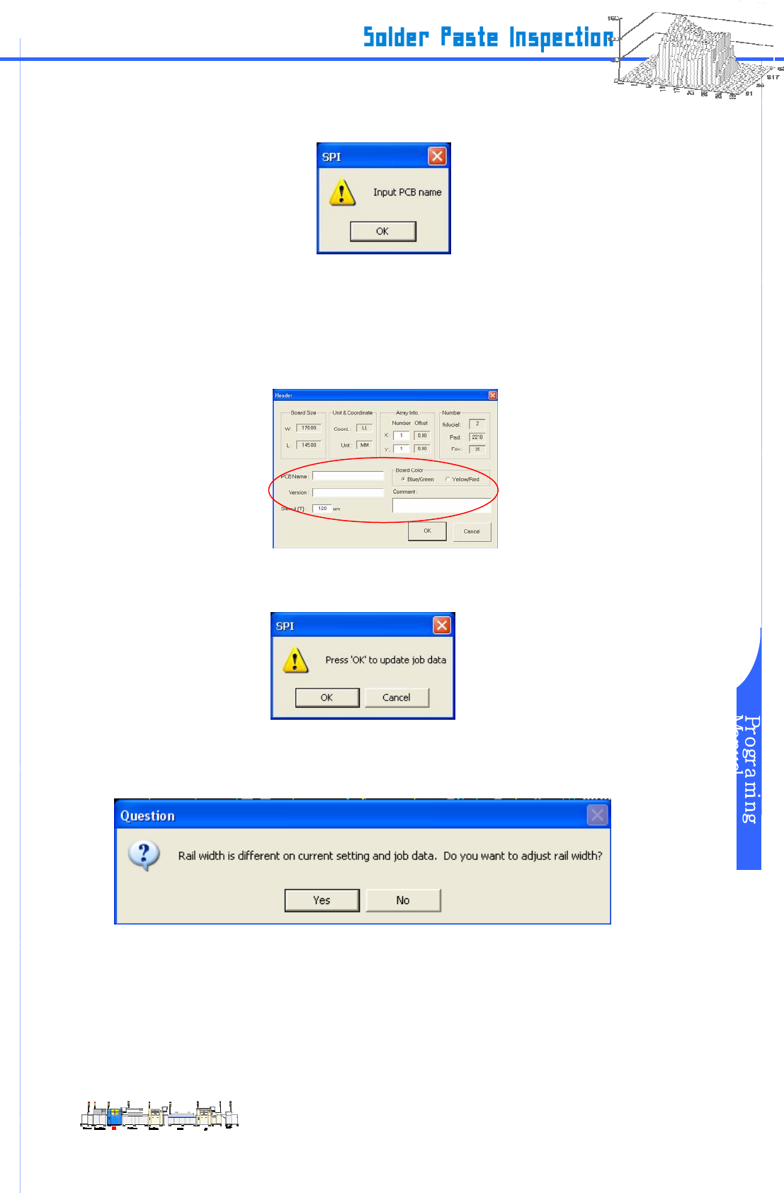 www.pemtron.com 16 步骤 8 : 若轨道宽度自动更新后弹出布局窗口(Layout window) ,导入程序将结束。 图 III-2-25 布局窗口 III-2-6 PCB 载入程序 步骤 1 : 请放置 PCB ,以便装载机传感器进行检测。 步骤 2 : 从菜单上点选 “ 载入/卸载( Load/Unload ) ” 。 图 III-2-26 菜单 步骤 3 : 等 “ Load PCB ” 对话框弹出后,请按 “ …
