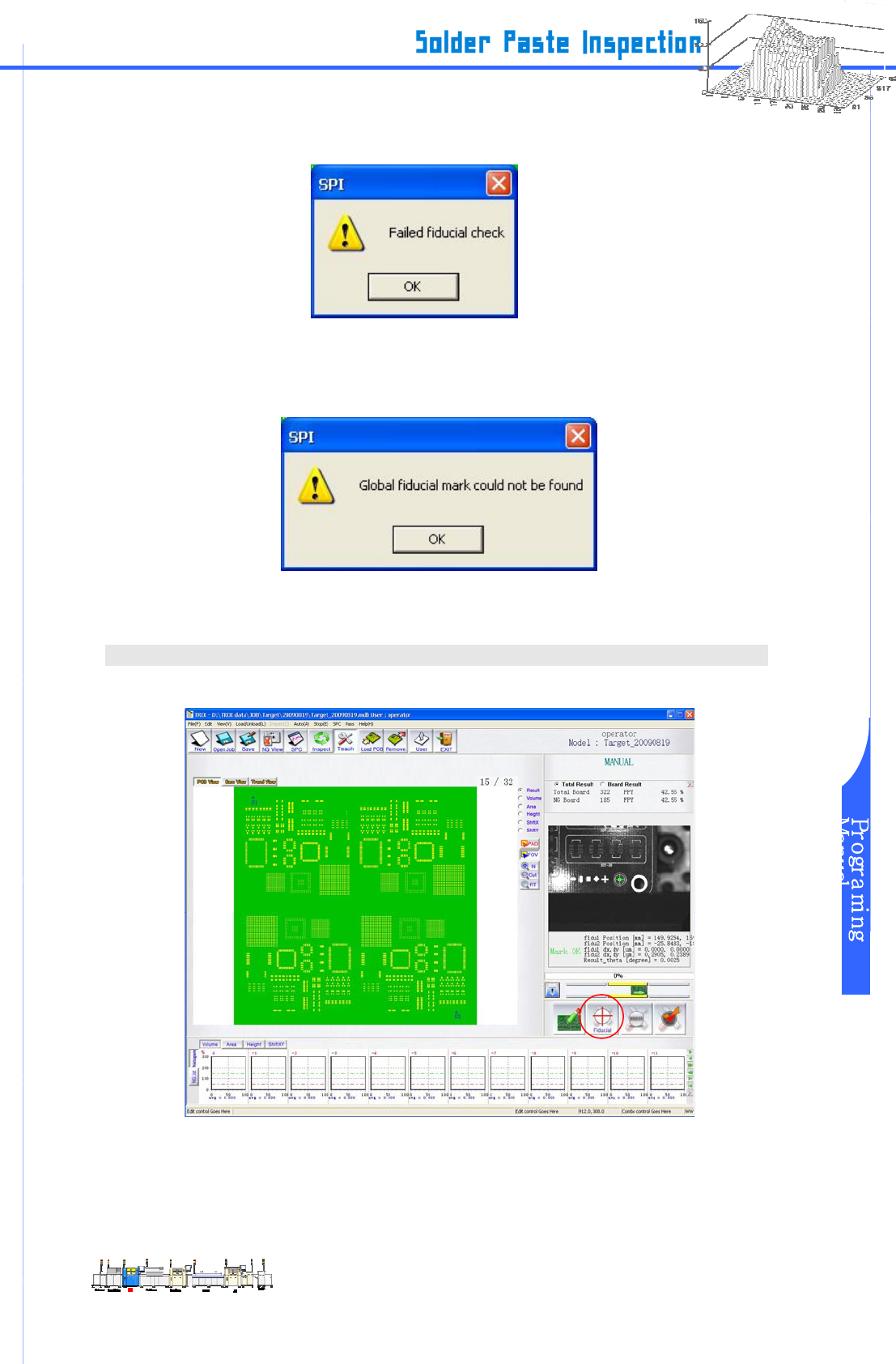 步骤 4:PCB 已传送后,弹出 “Failed fiducial check”,请按 “OK”。