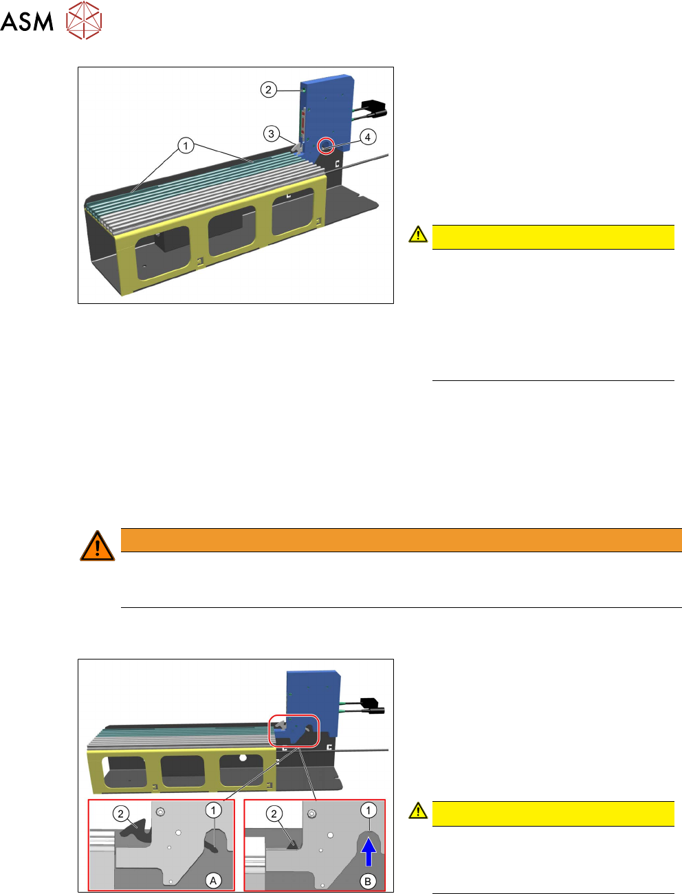 4 Bedienung 4.2 Anstecken eines Zuführmoduls User Manual / Bedienungsanleitung SIPLACE Single Slot Interface 05/2021 21 4.2 Anstecken eines Zuführmoduls WARNUNG Gefährdung durch Klemmen/Zwicken beim Einfahren des Zuführm…