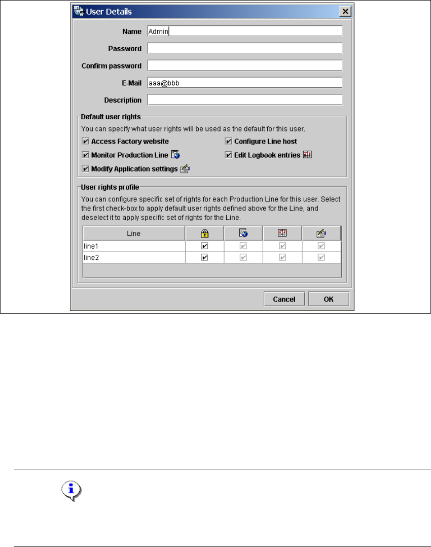 Installation and Configuration Guide SIPLACE Explorer 4 Configuration Edition 02/2005 EN 4.2 Configuring the Factor y Configuration Utility 109 The User Det a ils dialog box will open. Enter the user-specific details suc…
