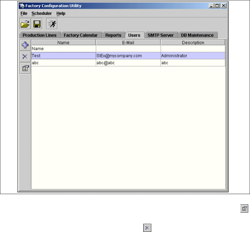 The list of defined users will be shown in the Factory Configuration Utility - Users dialog box.4
